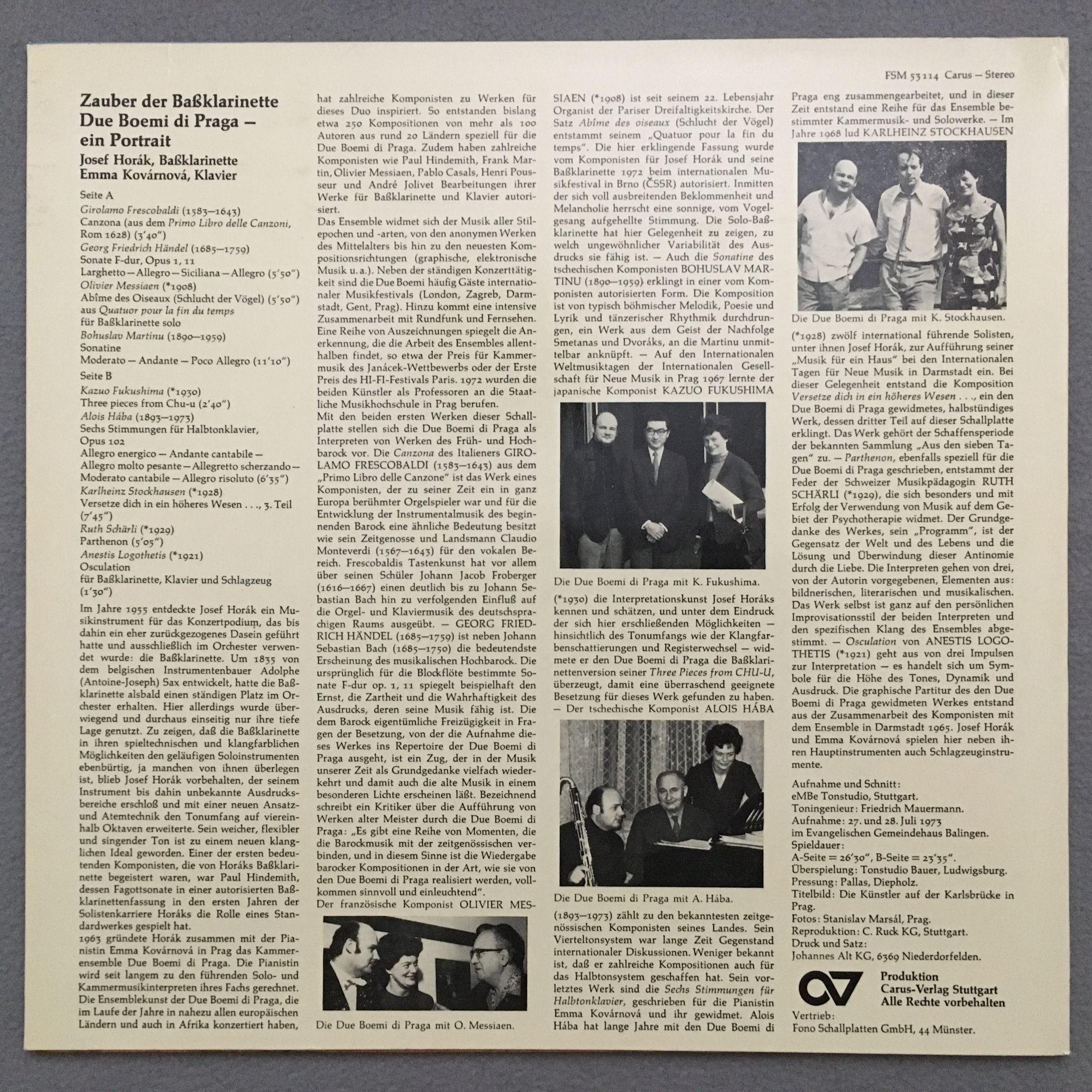 T592 Zauber der Bassklarinette Horak Kovarnova Corona 53114 Carus-Stereo