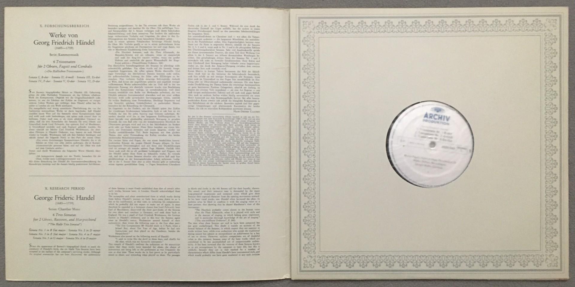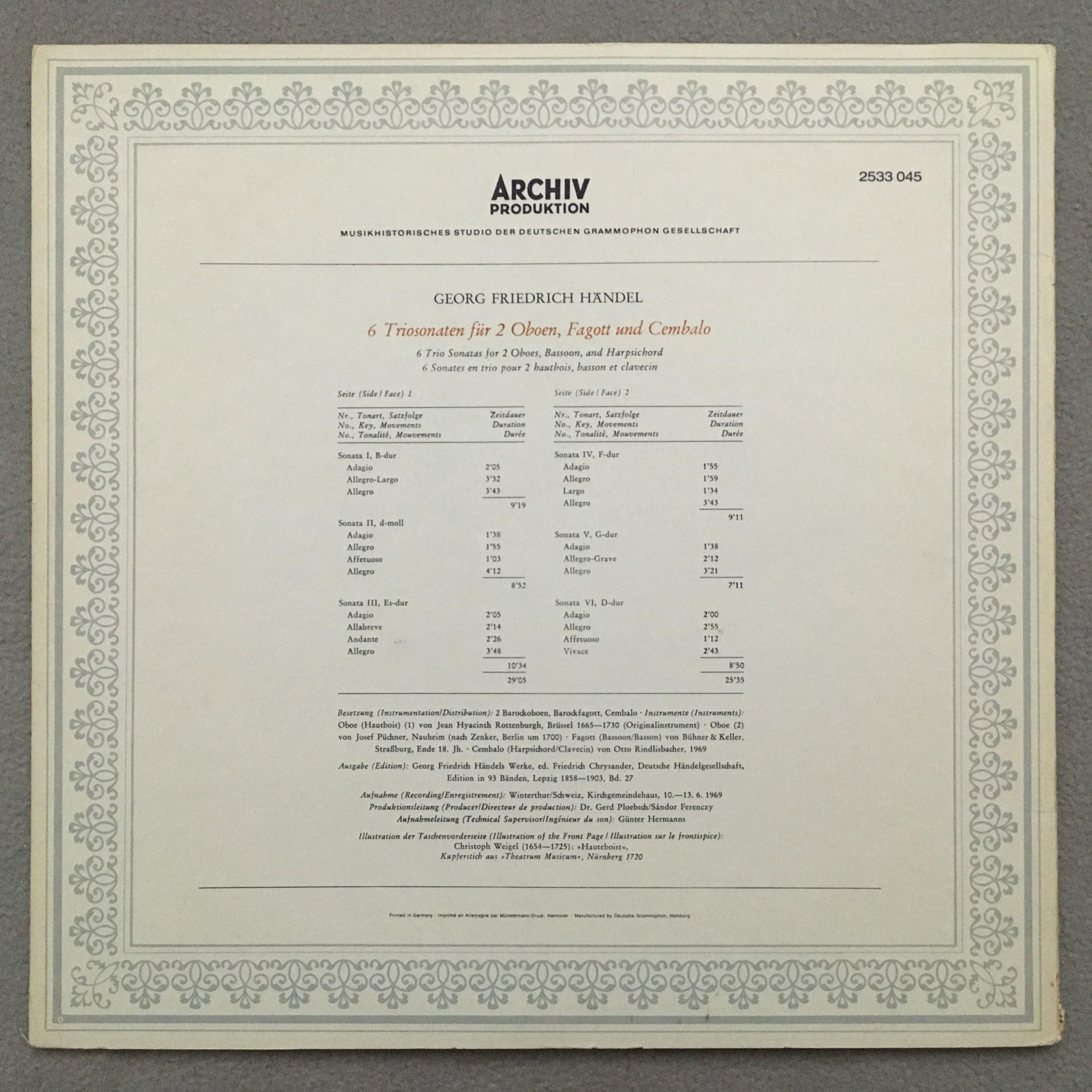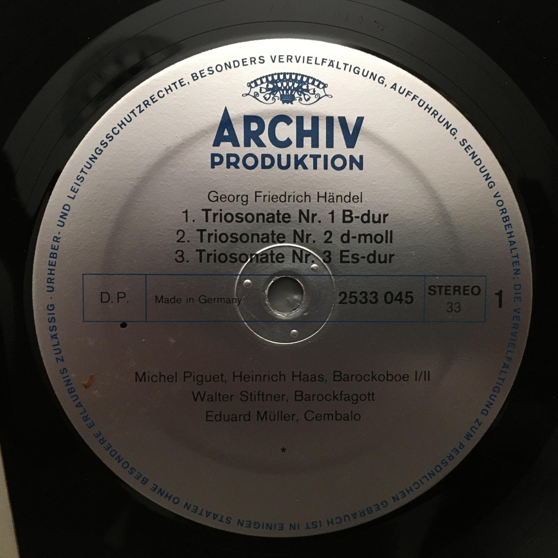 T602 Handel 6 Trio Sonatas Piguet Haas Stiftner Müller DGG Archiv 2533 045 Ster