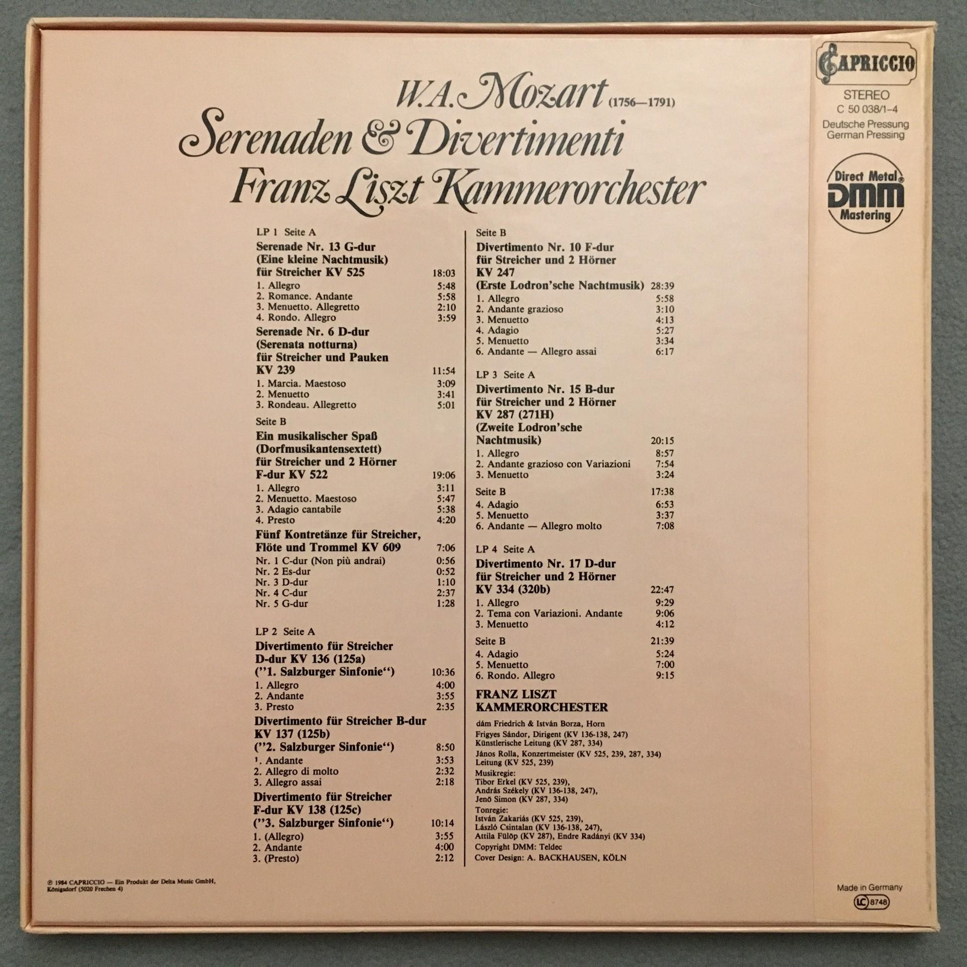E287 Mozart Serenades & Divertimenti Sandor 4LP Capriccio C 50 038/1-4 Dig St