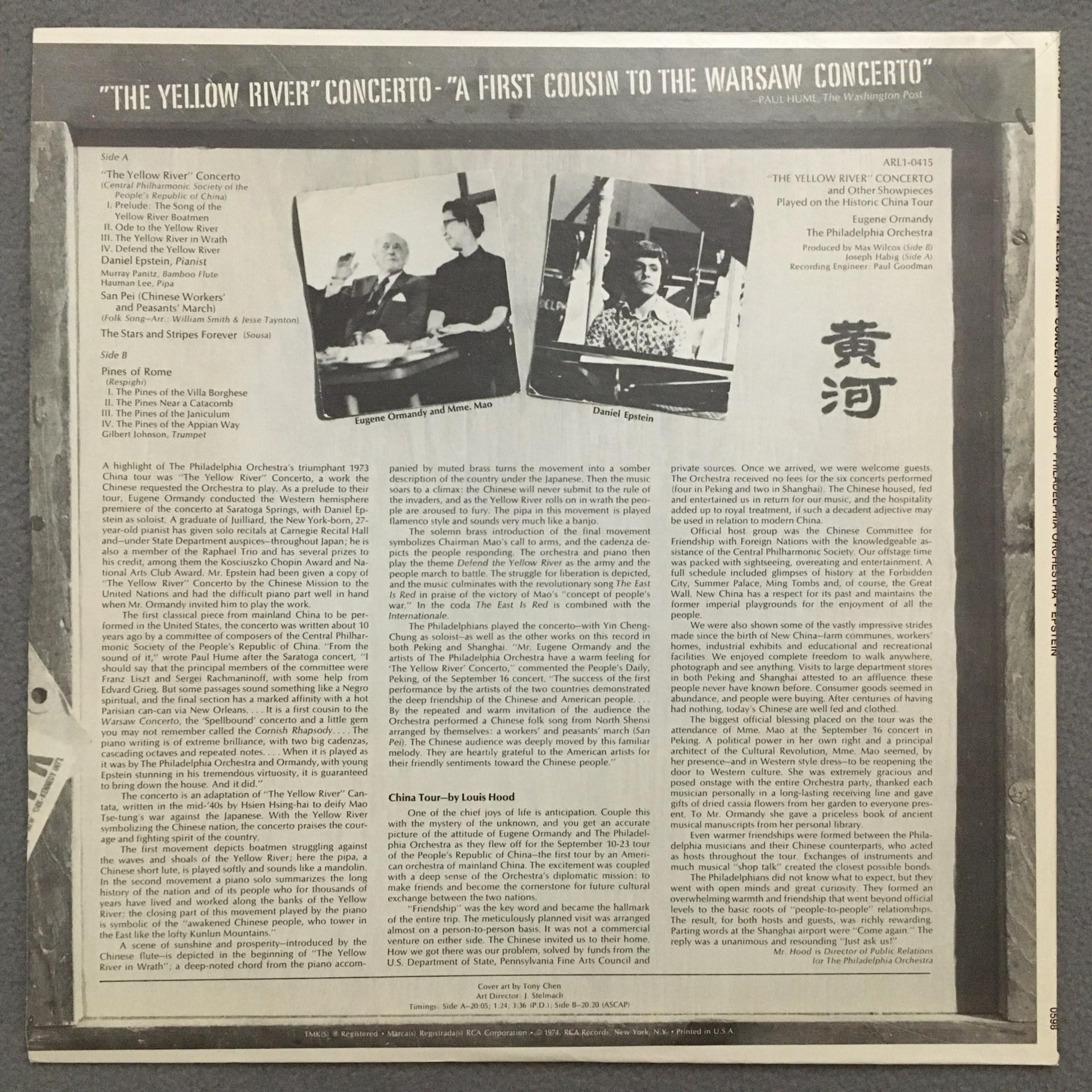 T608 The Yellow River Concerto Epstein Ormandy RCA ARL1-0415 Stereo