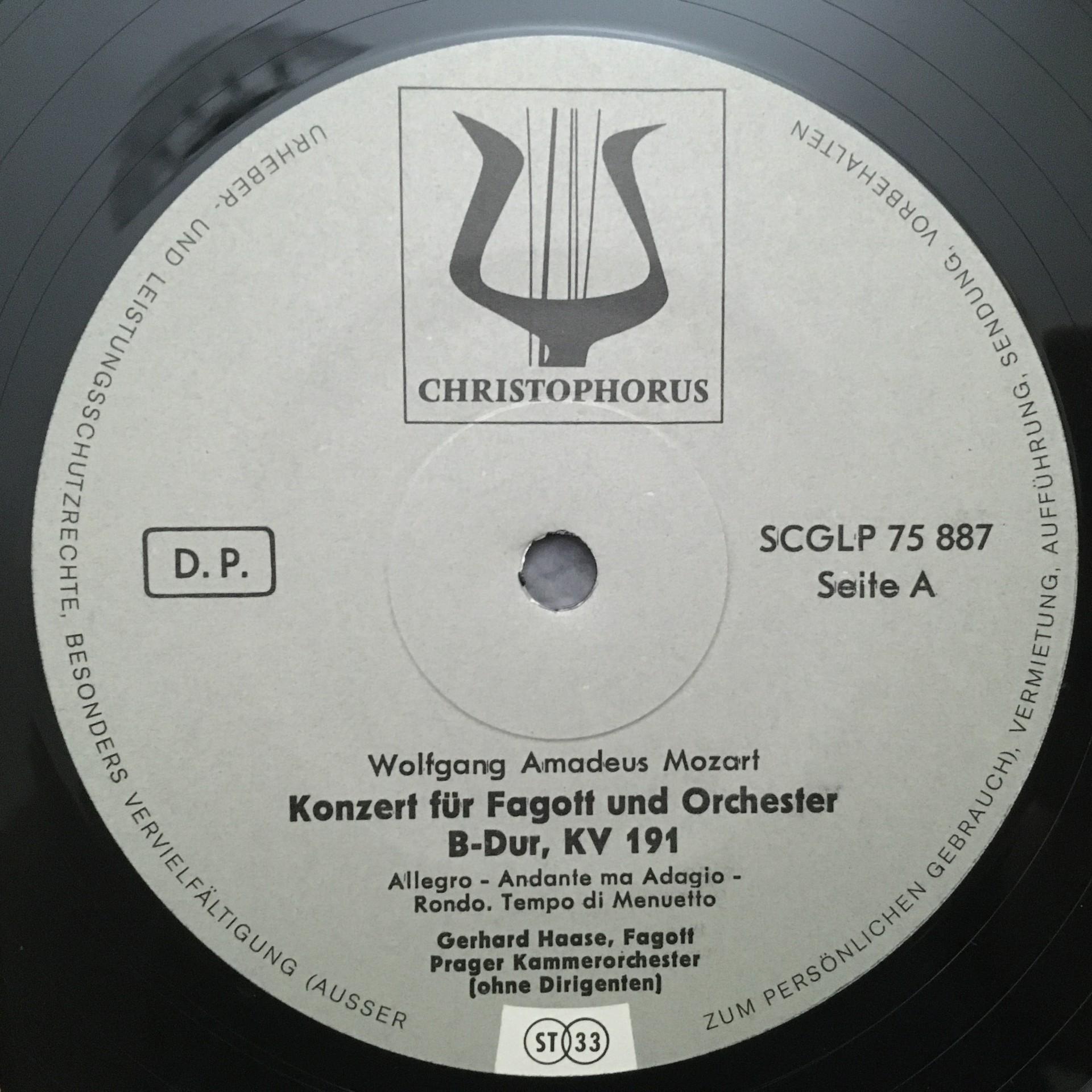T619 Mozart Concerto Richter Symphony Haase Christophorus SCGLP 75 887 Stereo