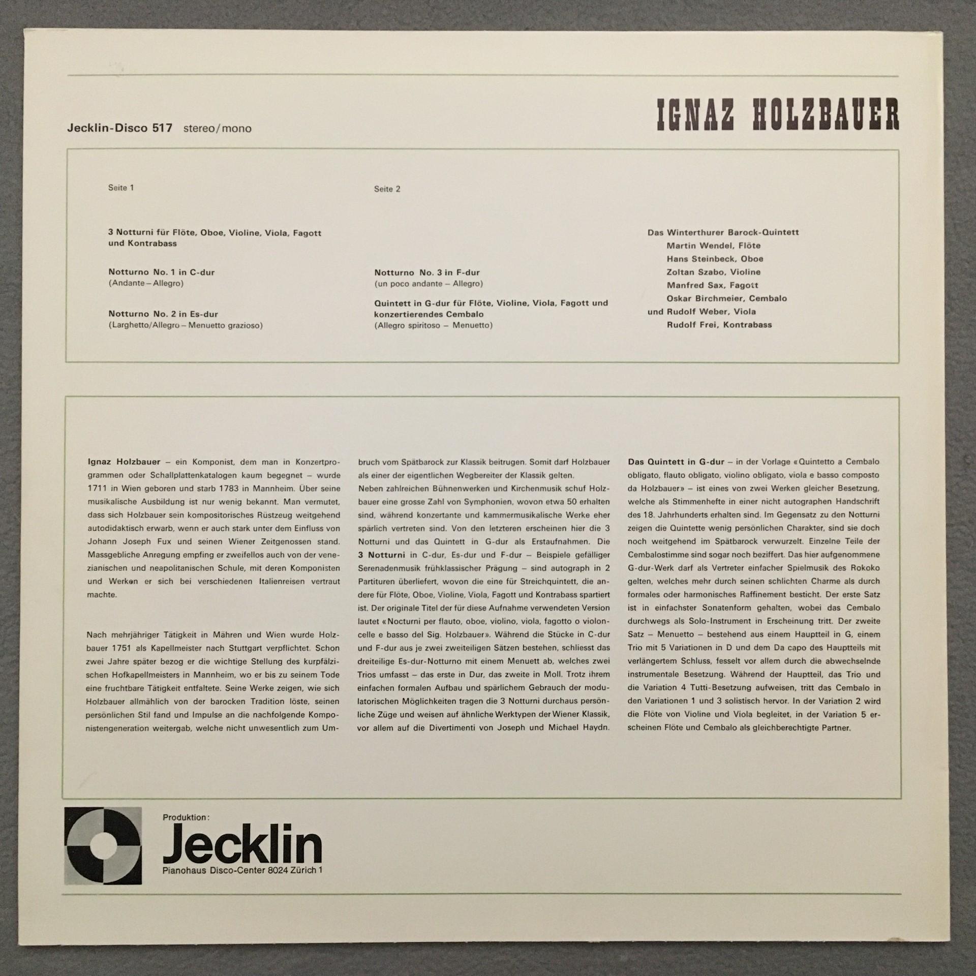 T621 Holzbauer Notturni Quintet Weber Frei Sax Wendel Jecklin 517 Stereo