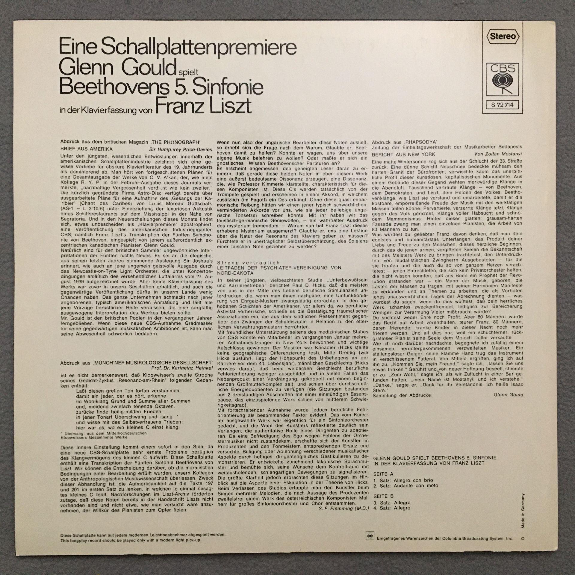 T624 Beethoven Symphony No.5 in Liszt Variation Glenn Gould CBS S 72 714 Stereo