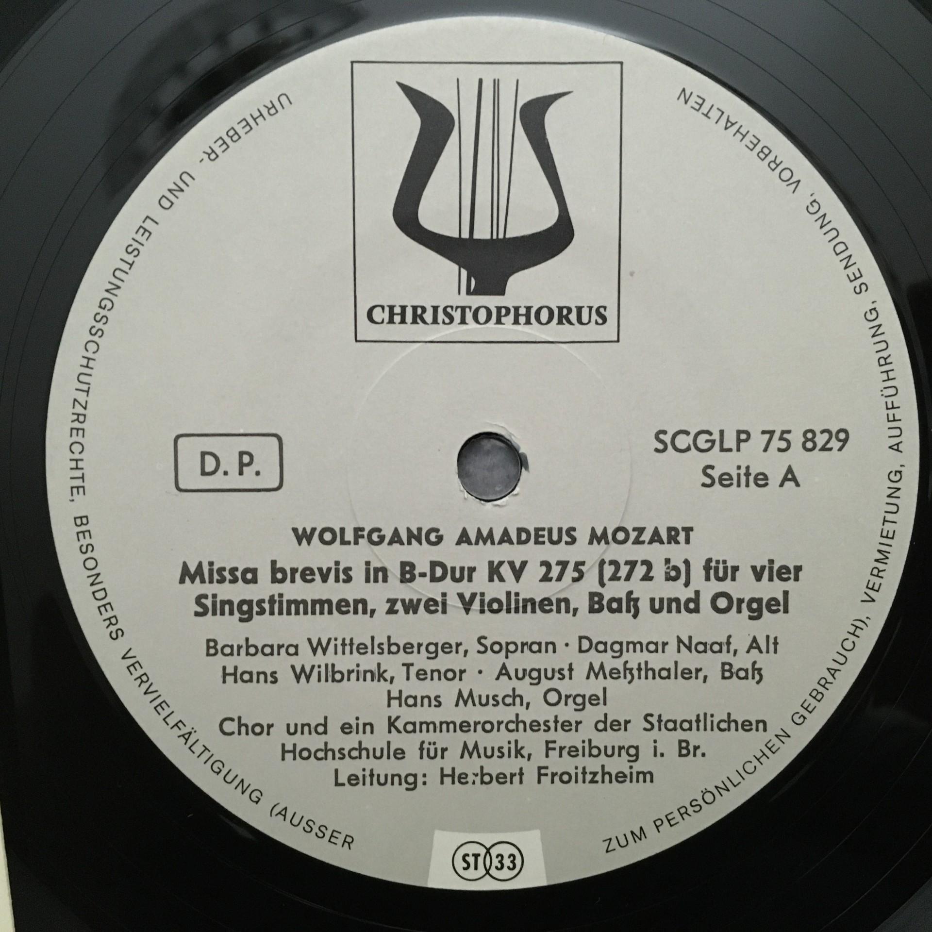 T625 Mozart Missa Brevis Schubert Mass Froitzheim Christophorus SCGLY 75 829 St
