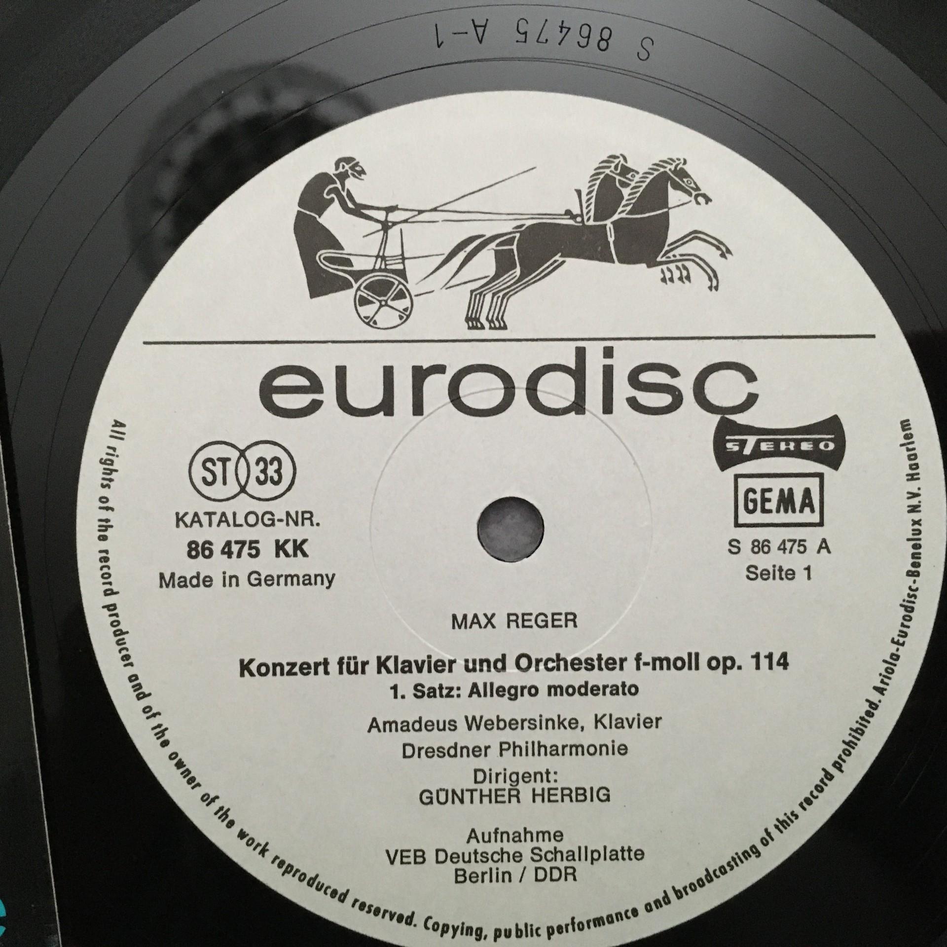 T634 Reger Piano Concerto Webersinke Herbig Eurodisc 86 475 KK Stereo