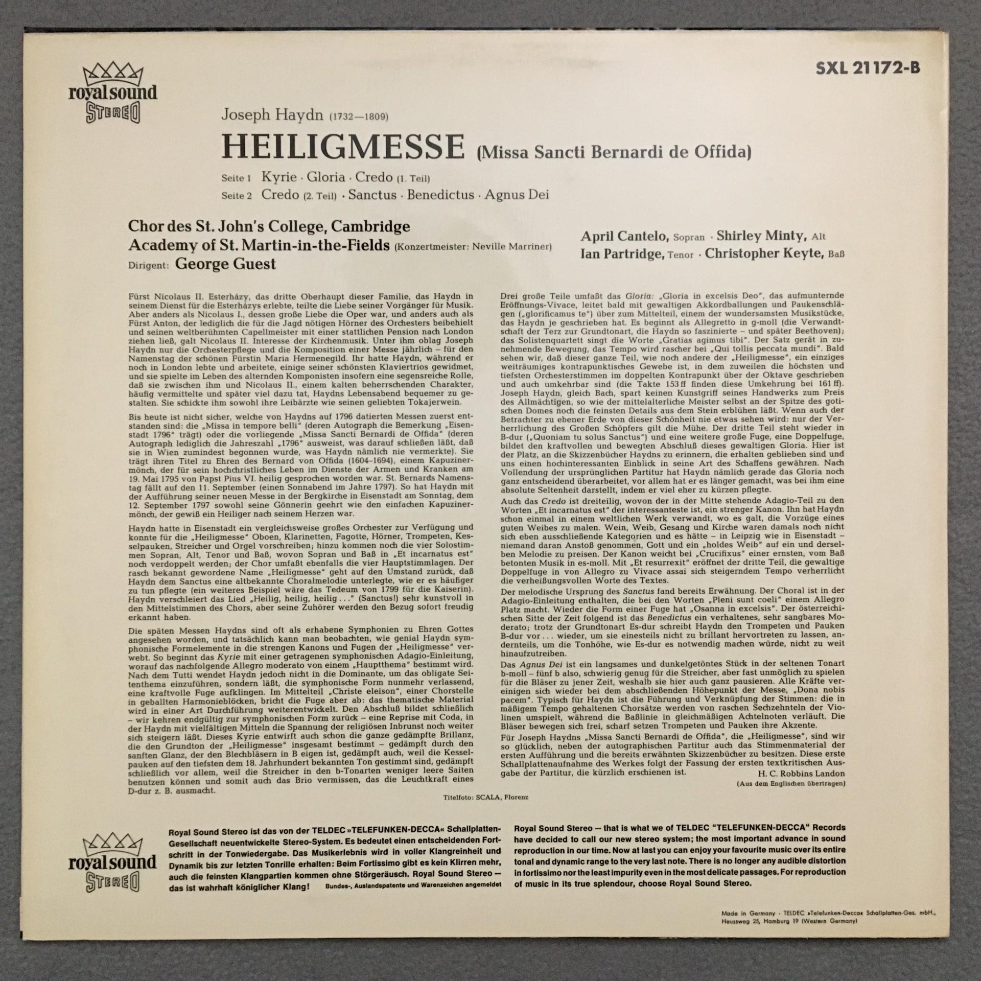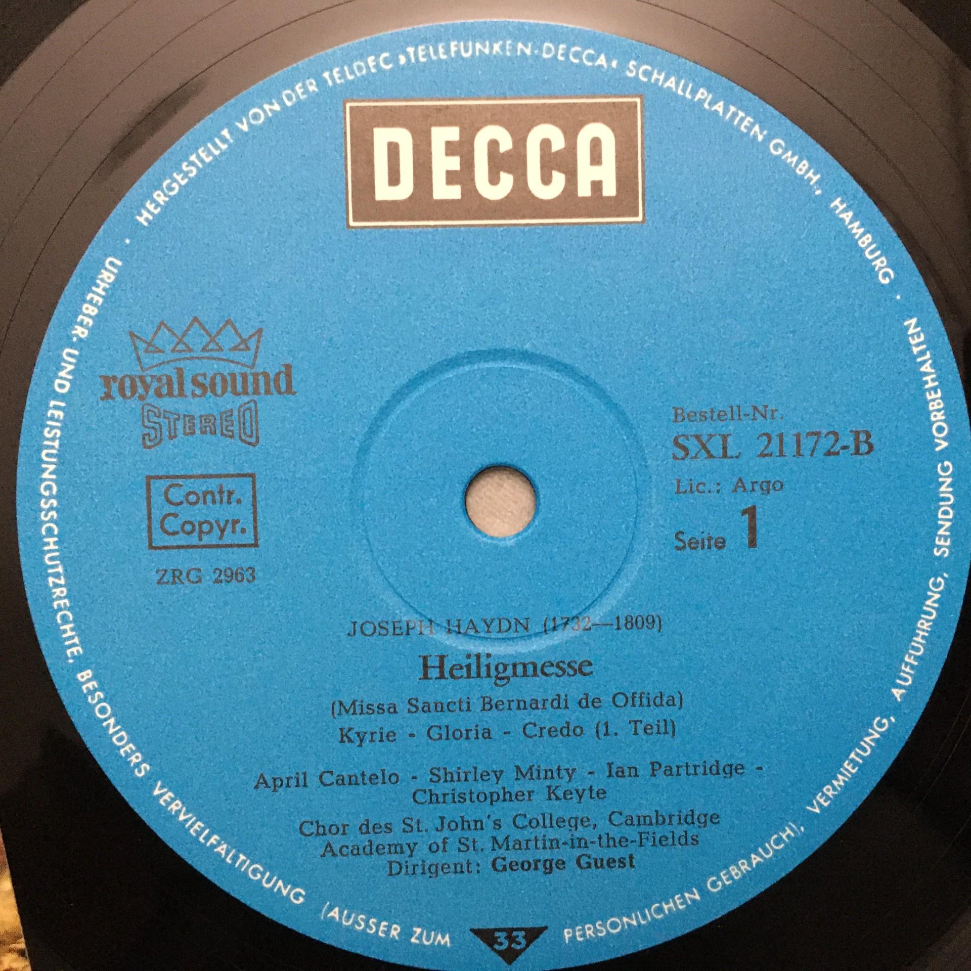 T635 Haydn Heiligmesse Partridge Minty Guest DECCA SXL 21 172-B Stereo
