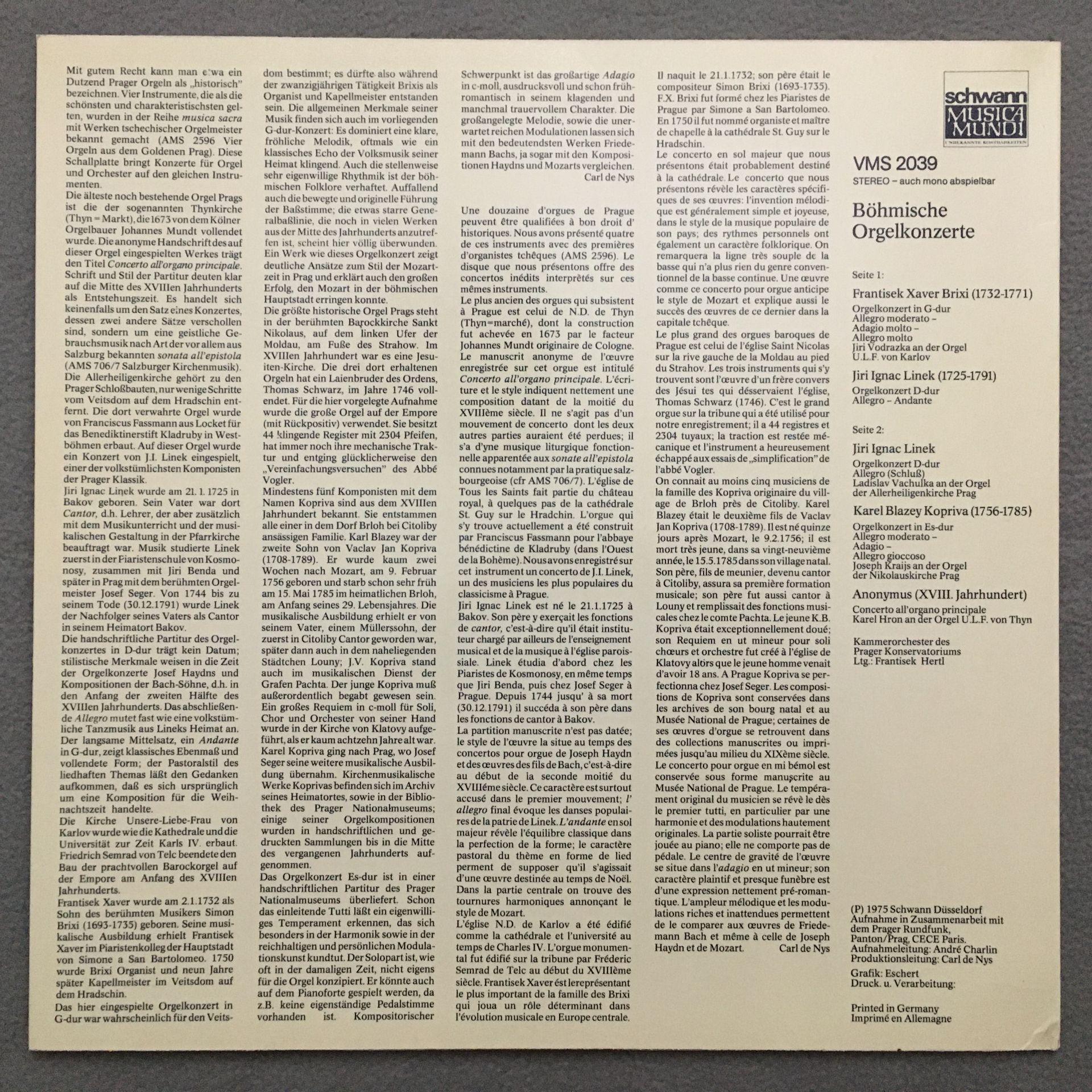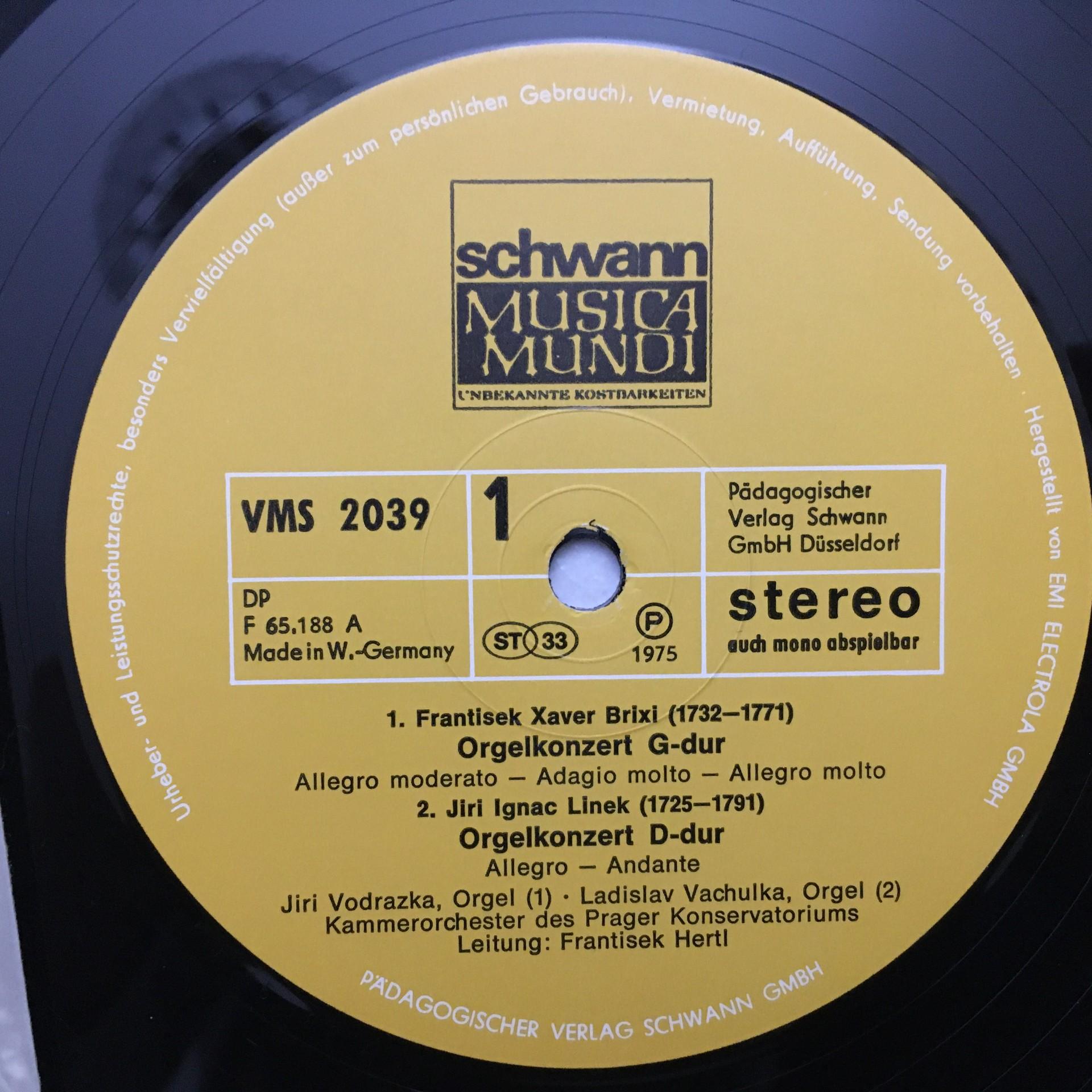 T650 Bohemian Organ Concertos Hertl Schwann VMS 2039 Stereo