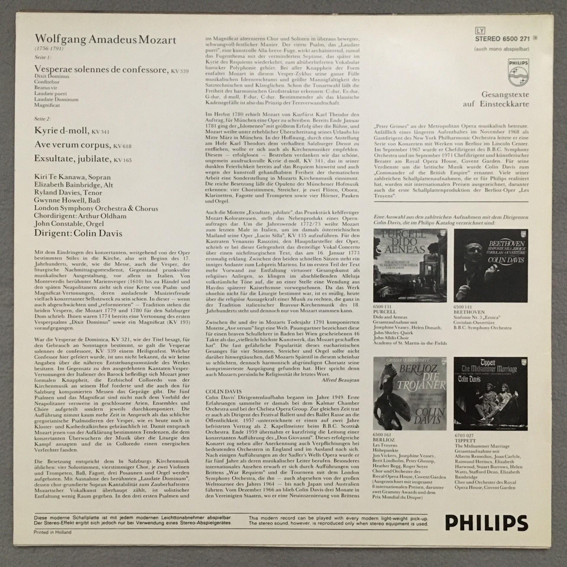 T662 Mozart Exsultate Jubilate Kiri Te Kanawa Davis Philips 6500 271 Stereo