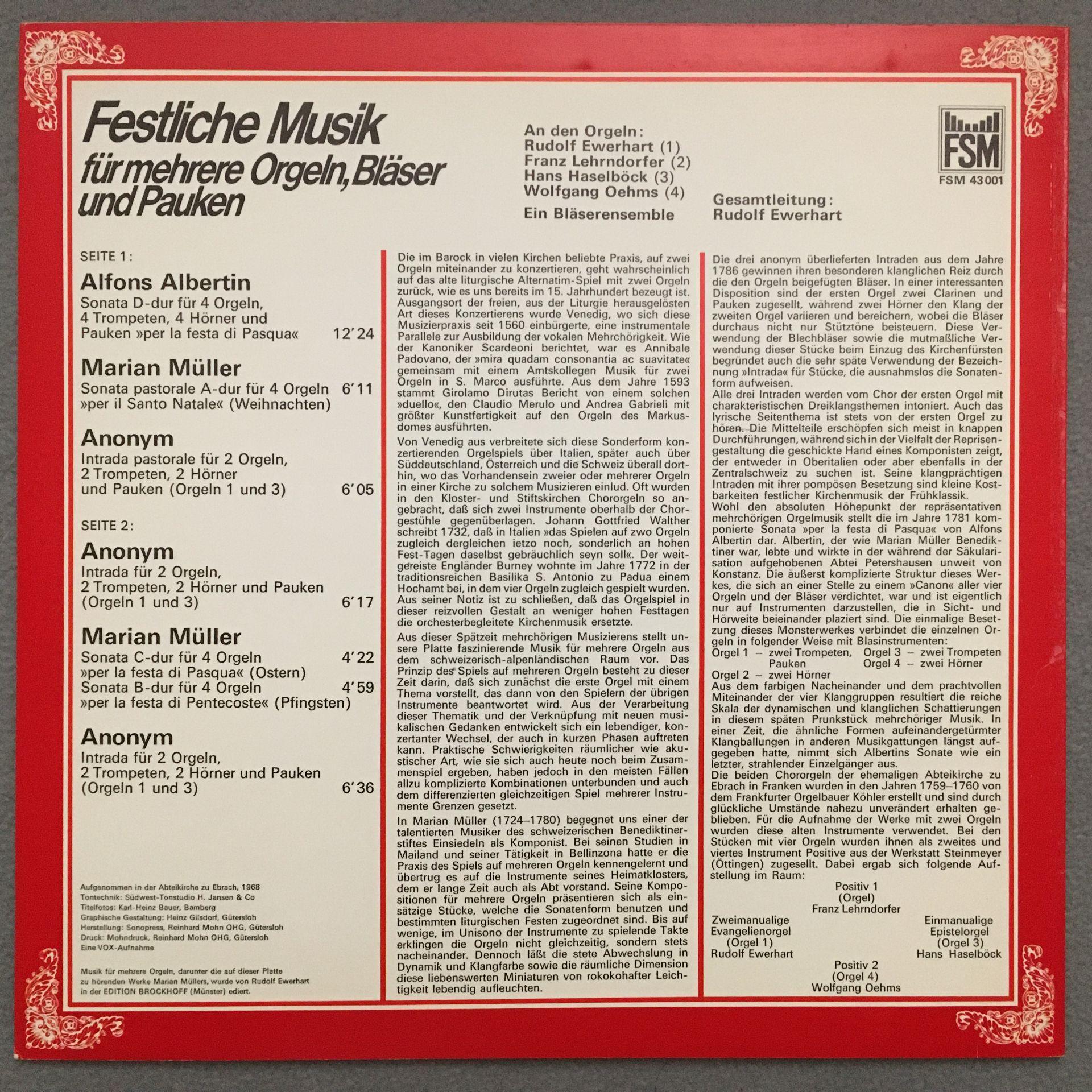 T689 Festive Music for Organs & Winds Ewerhart Haselböck FSM 43 001 Stereo