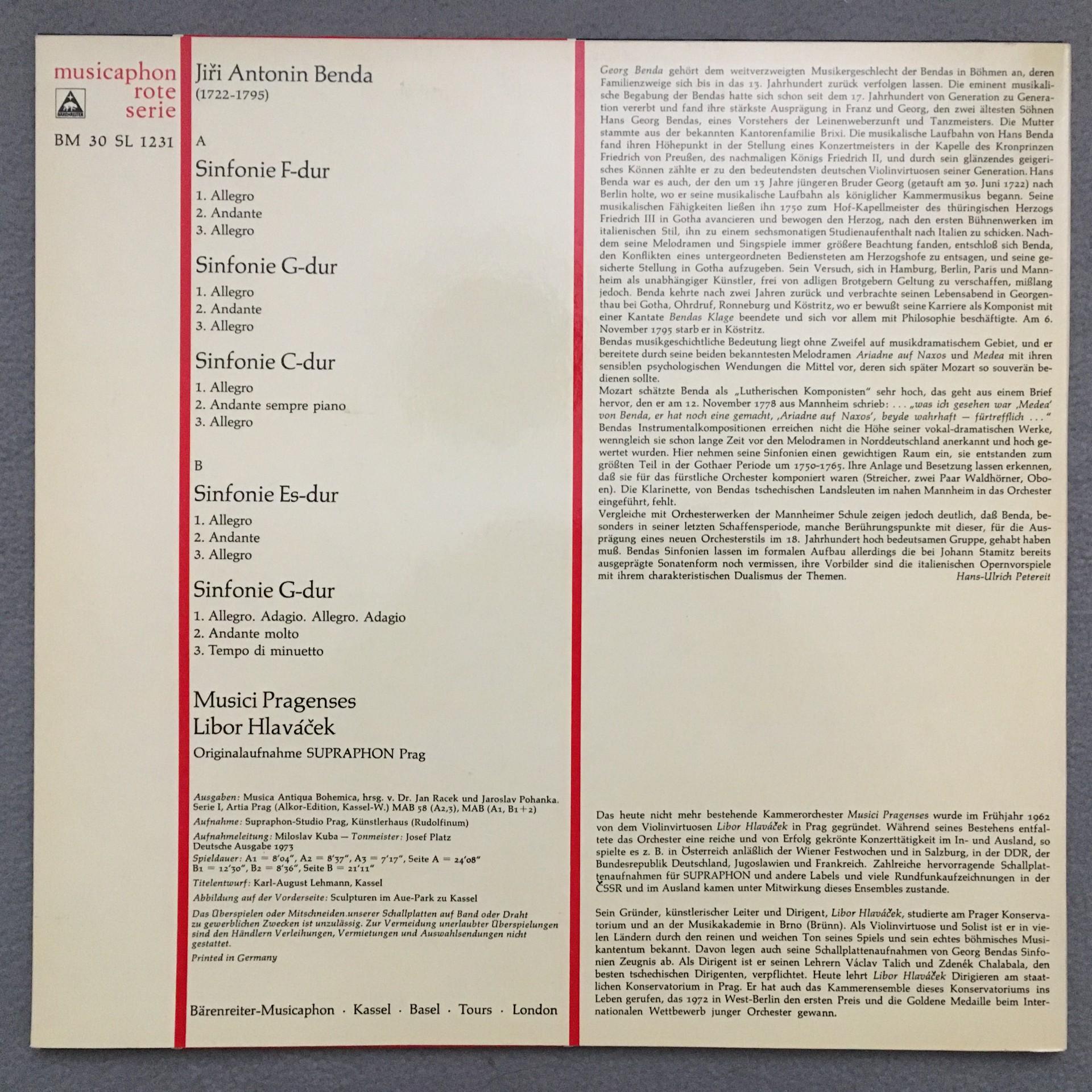 T690 Benda 5 Symphonies Hlavacek Musicaphon BM 30 SL 1231 Stereo