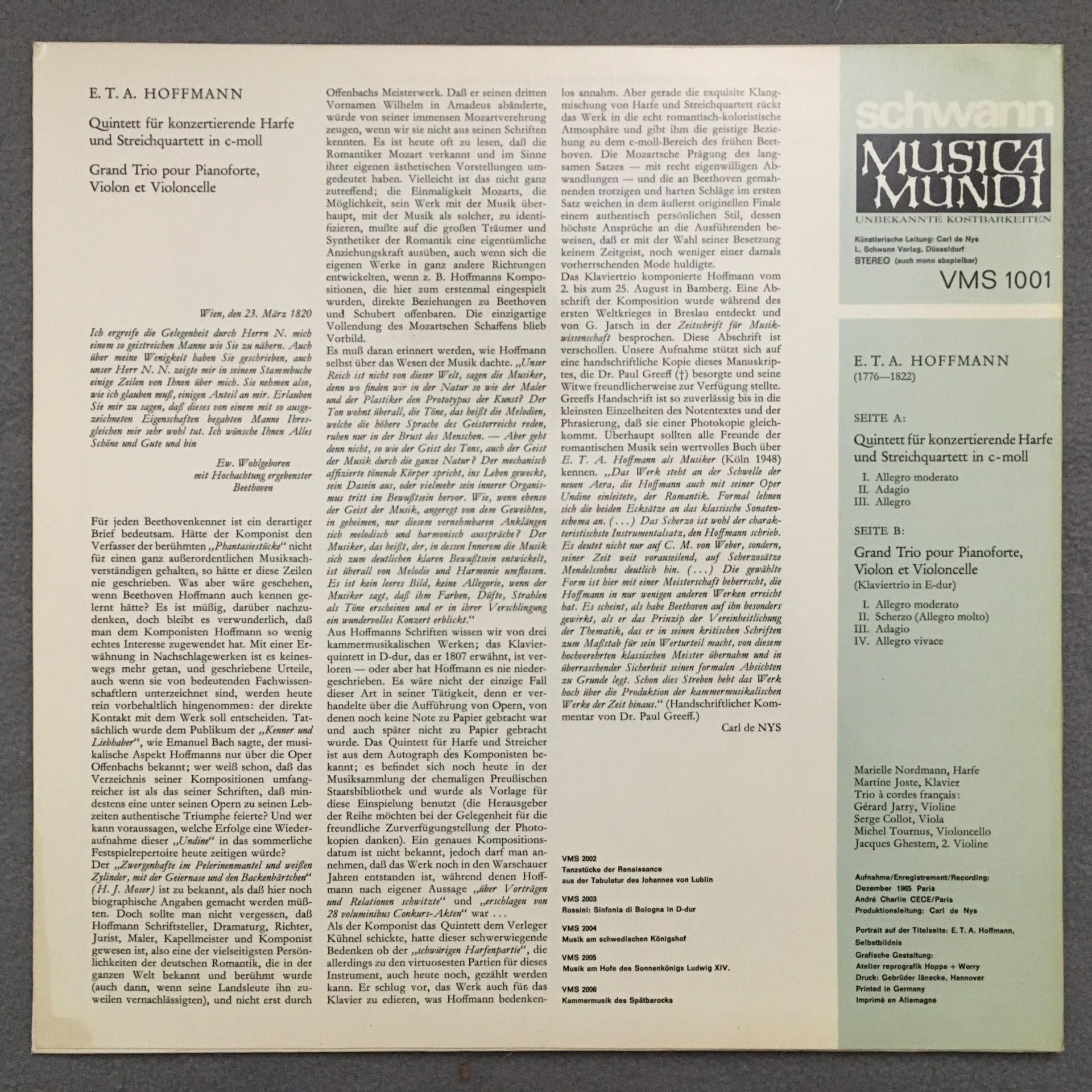 T691 Hoffmann Harp Quintet Piano Trio Nordmann Joste Schwann VMS 2001 Stereo