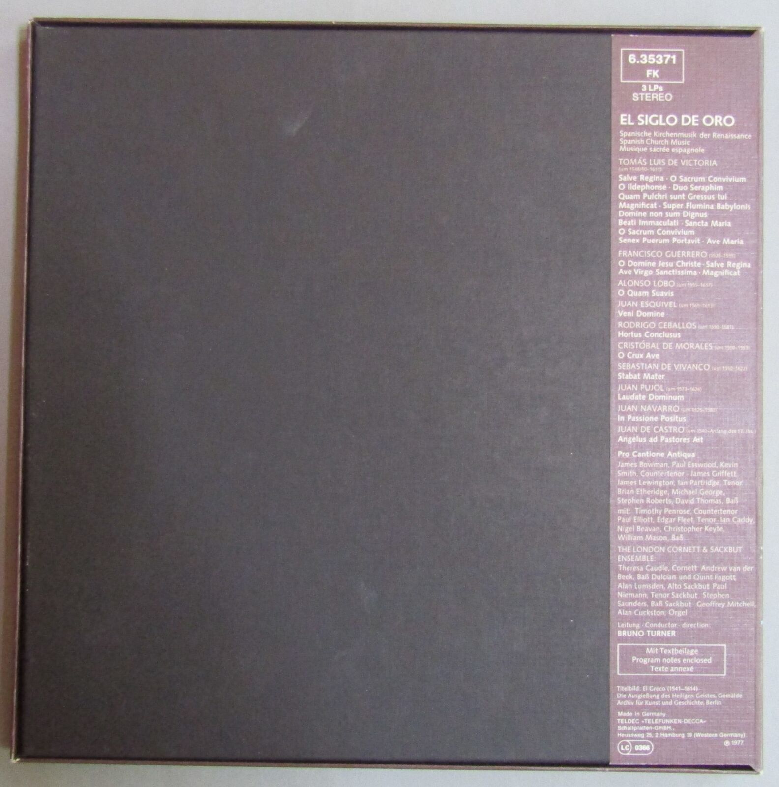G294 El Siglo de Oro Spanish Church Music Turner 3LP Telefunken 6.35371 FK St