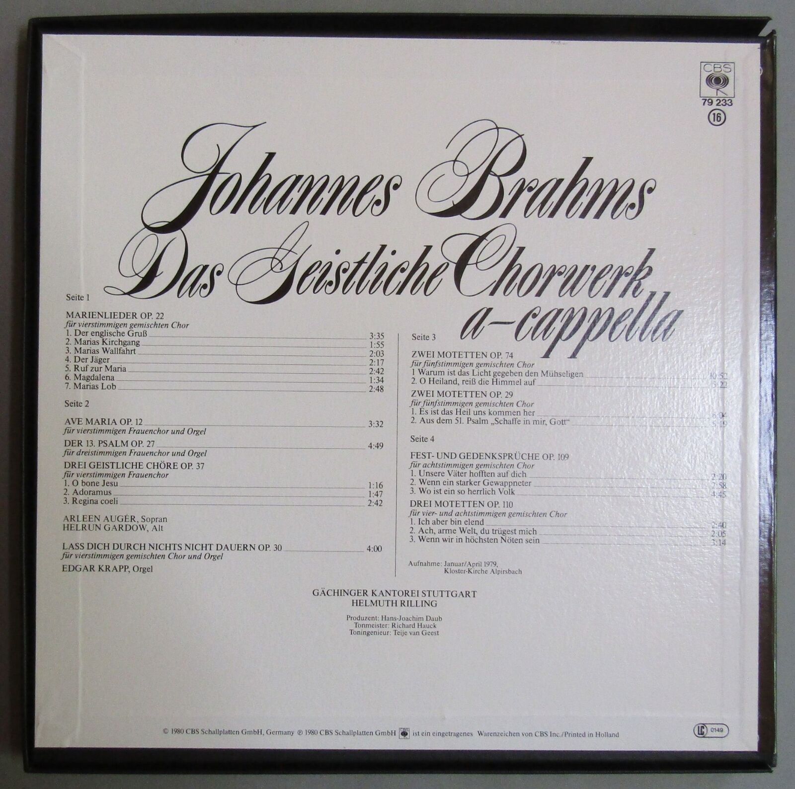 G290 Brahms Sacred Choral Works Rilling 2LP CBS 79 233 Stereo