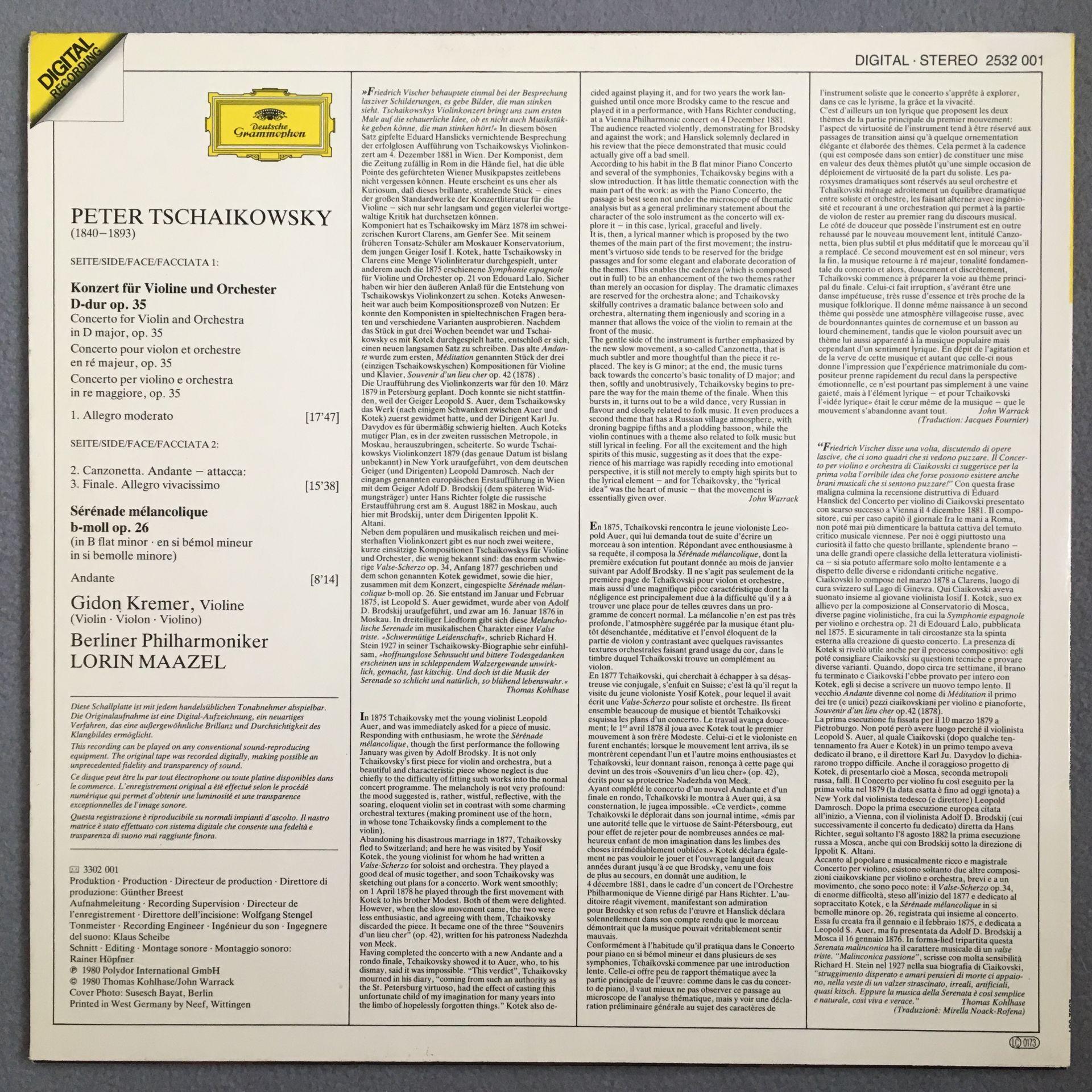 T694 Tchaikovsky Violin Concerto Kremer Maazel DGG 2532 001 Digital Stereo