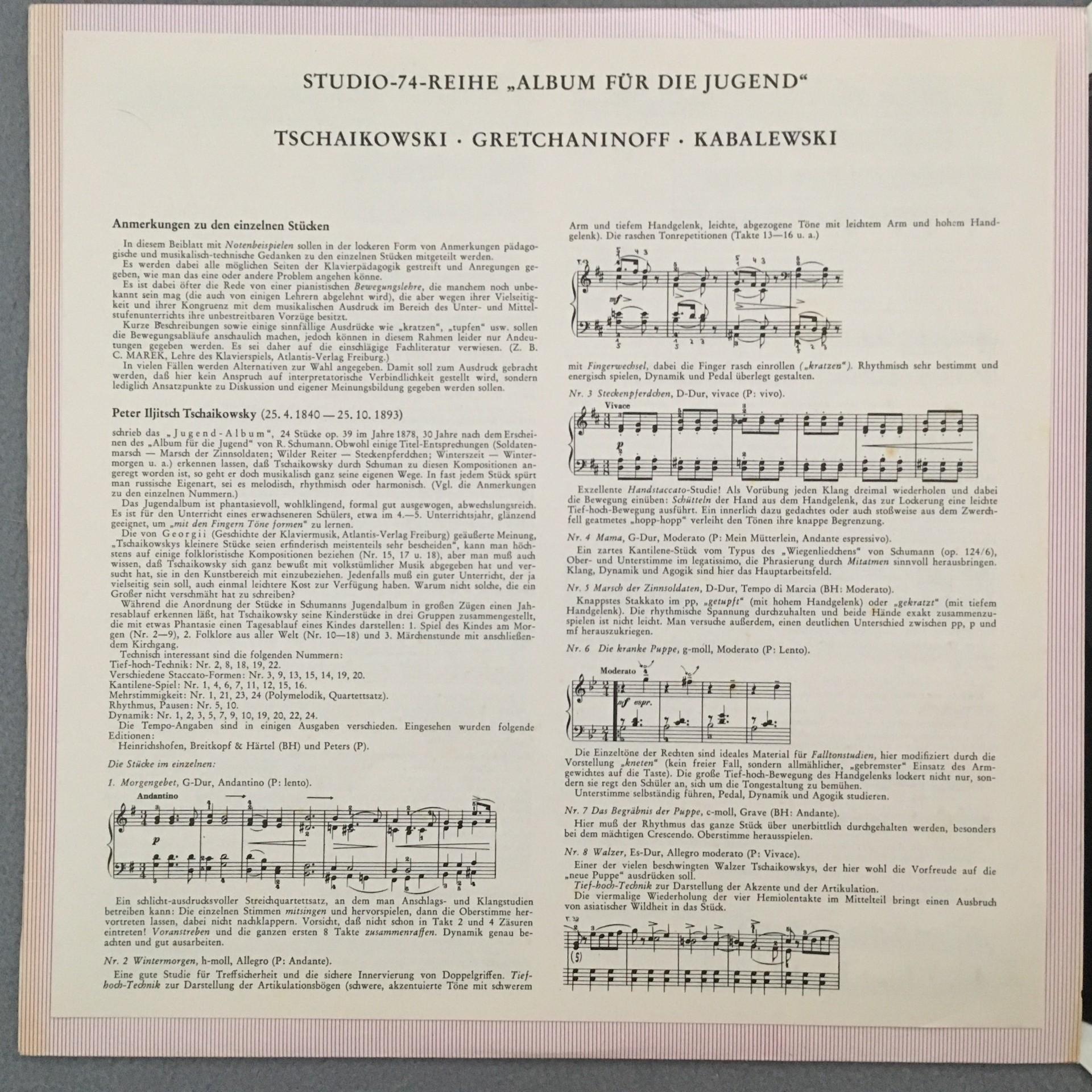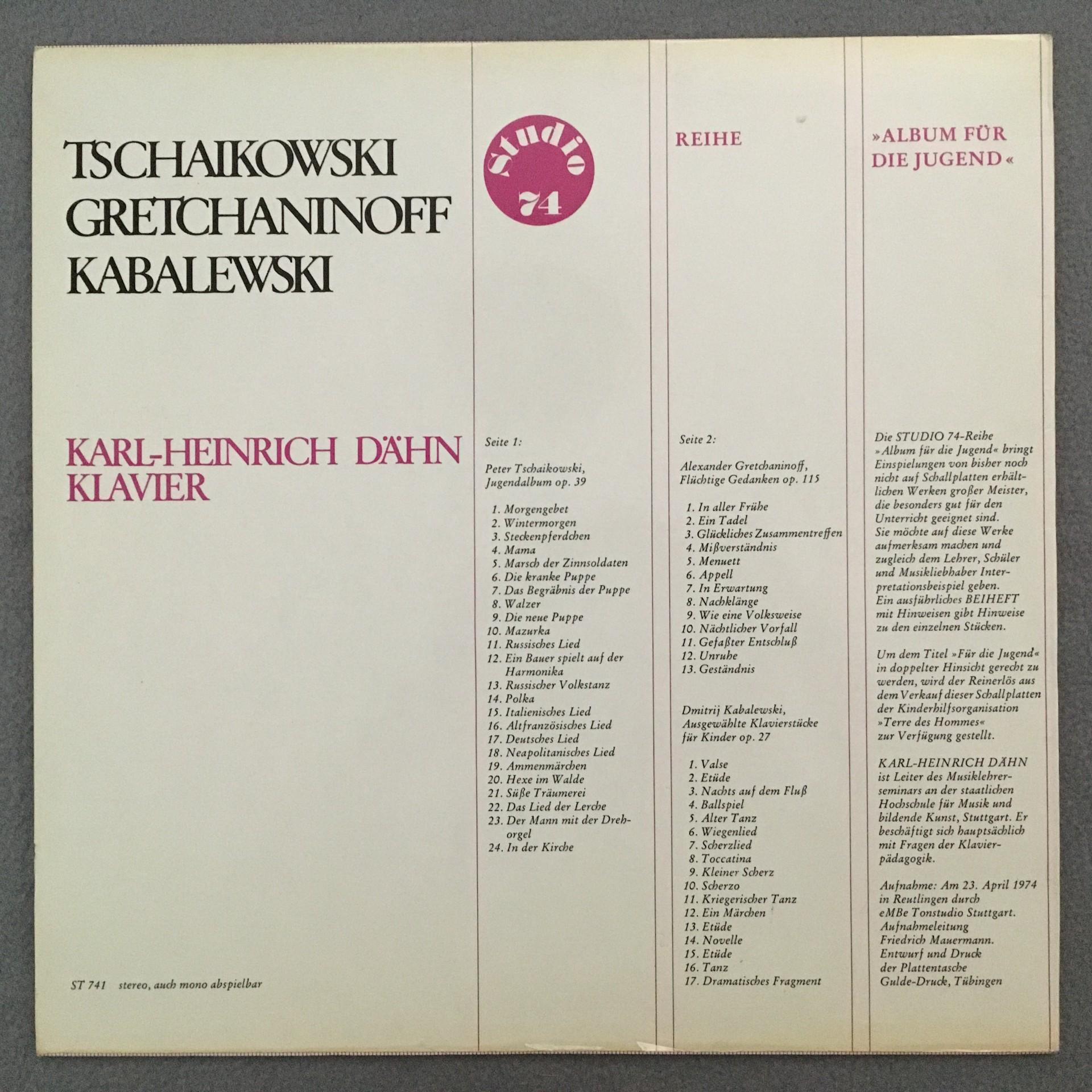 T718 Tchaikovsky Jugendalbum Kabalewski Dähn Piano Studio 74 St 741 Stereo