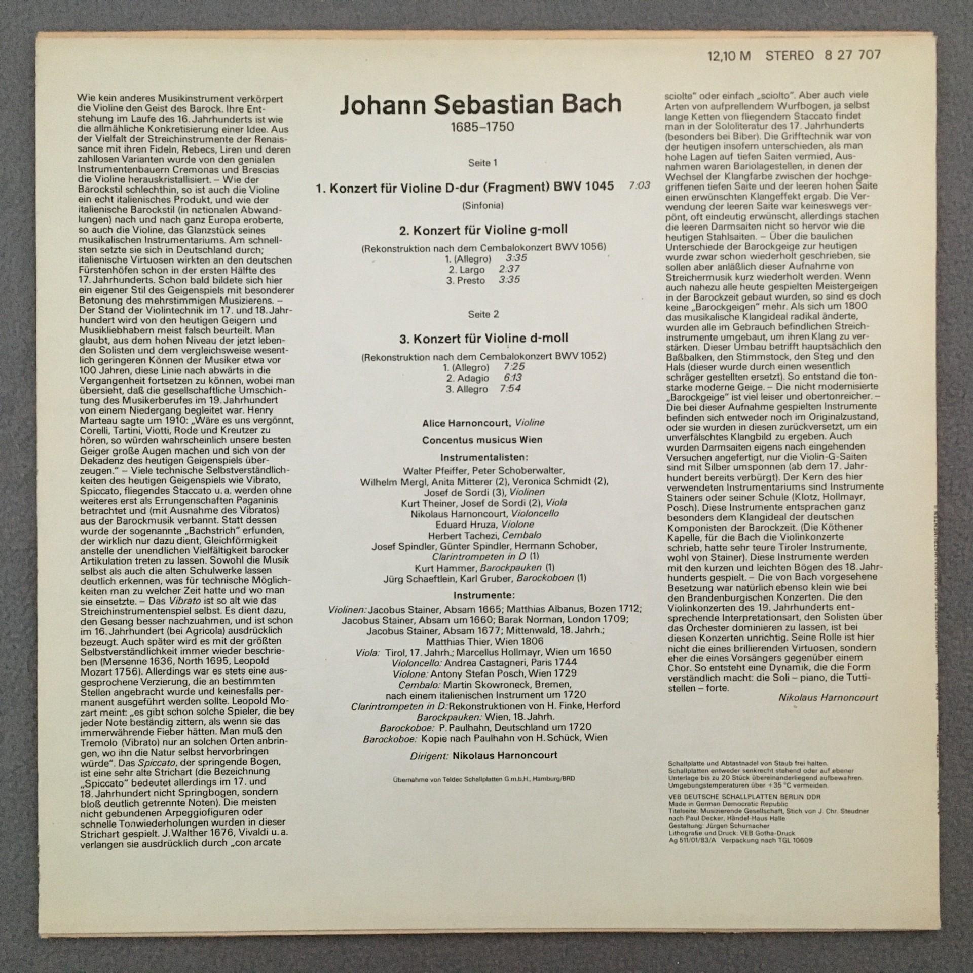 T720 Bach Violin Concertos Pfeiffer A. & N. Harnoncourt Eterna 8 27 707 Stereo