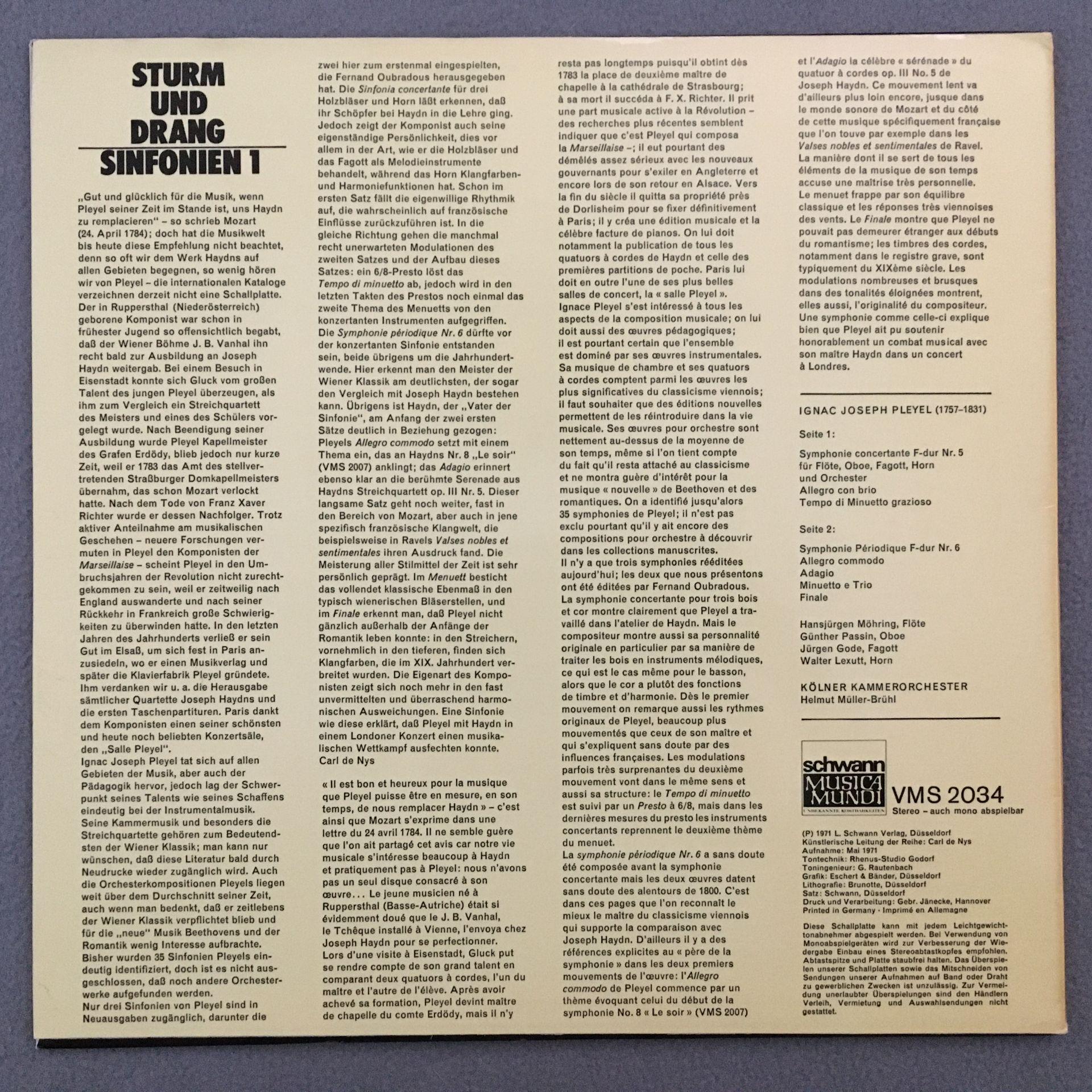 T724 Sturm und Drang Symphonies 1 Müller-Brühl Schwann VMS 2034 Stereo