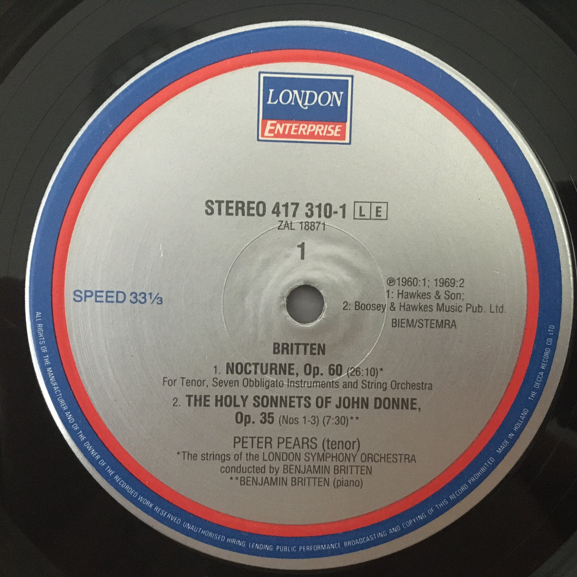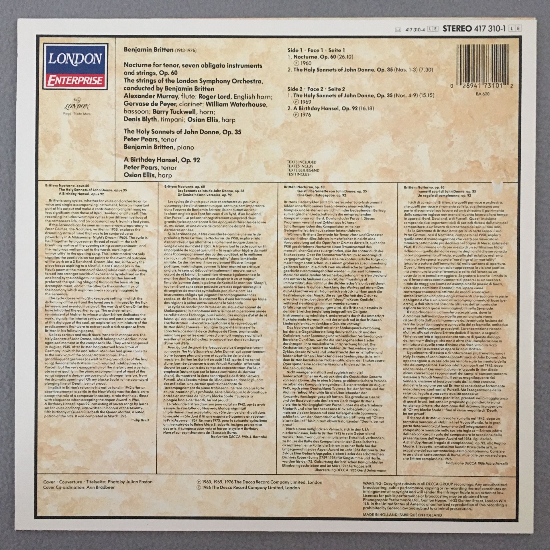 R572 Britten Nocturne Tuckwell Murray Pears London 417 310-1 Stereo