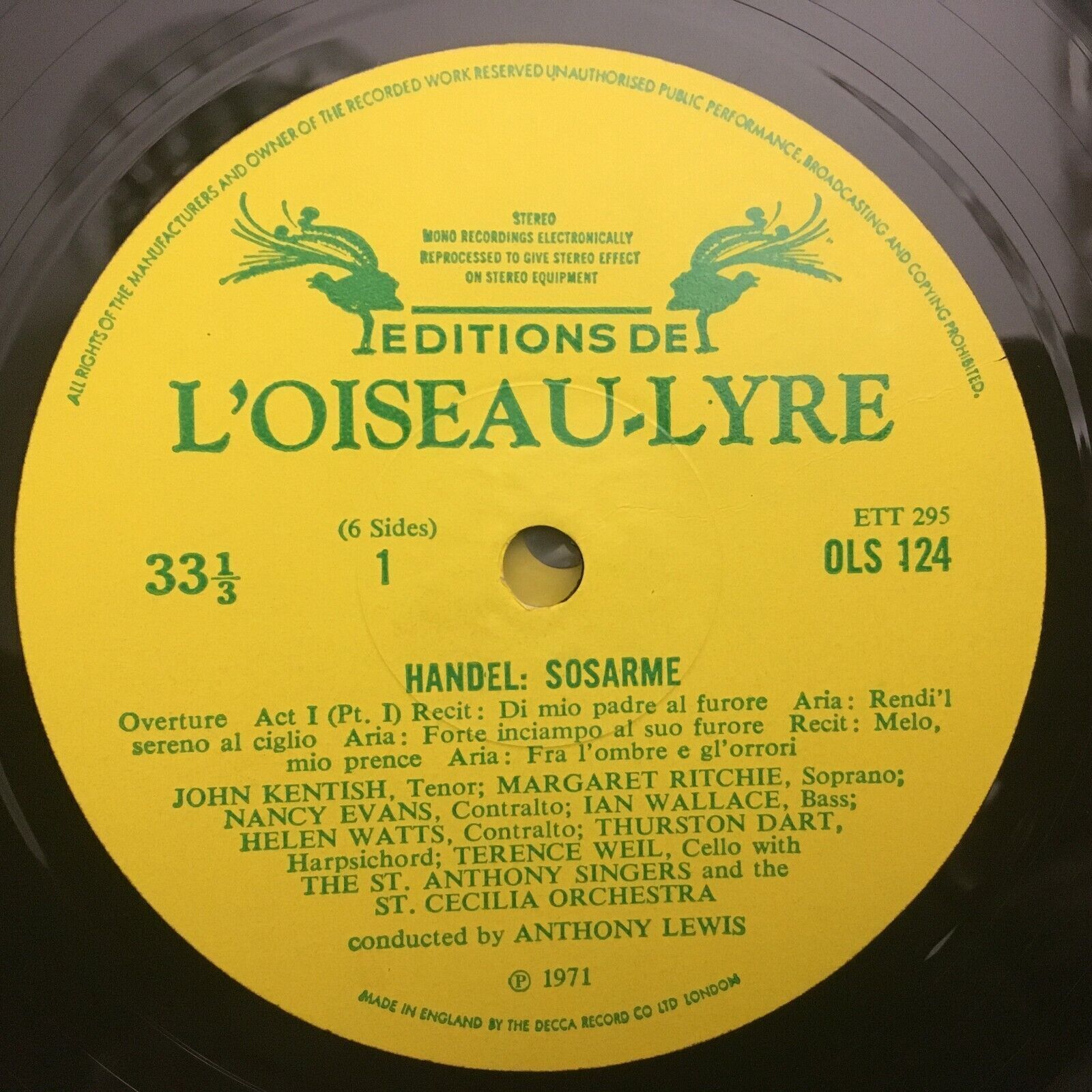 G465 Handel Sosarme Ritchie Watts Lewis 3LP L´Oiseau-Lyre OLS 124-6 Stereo