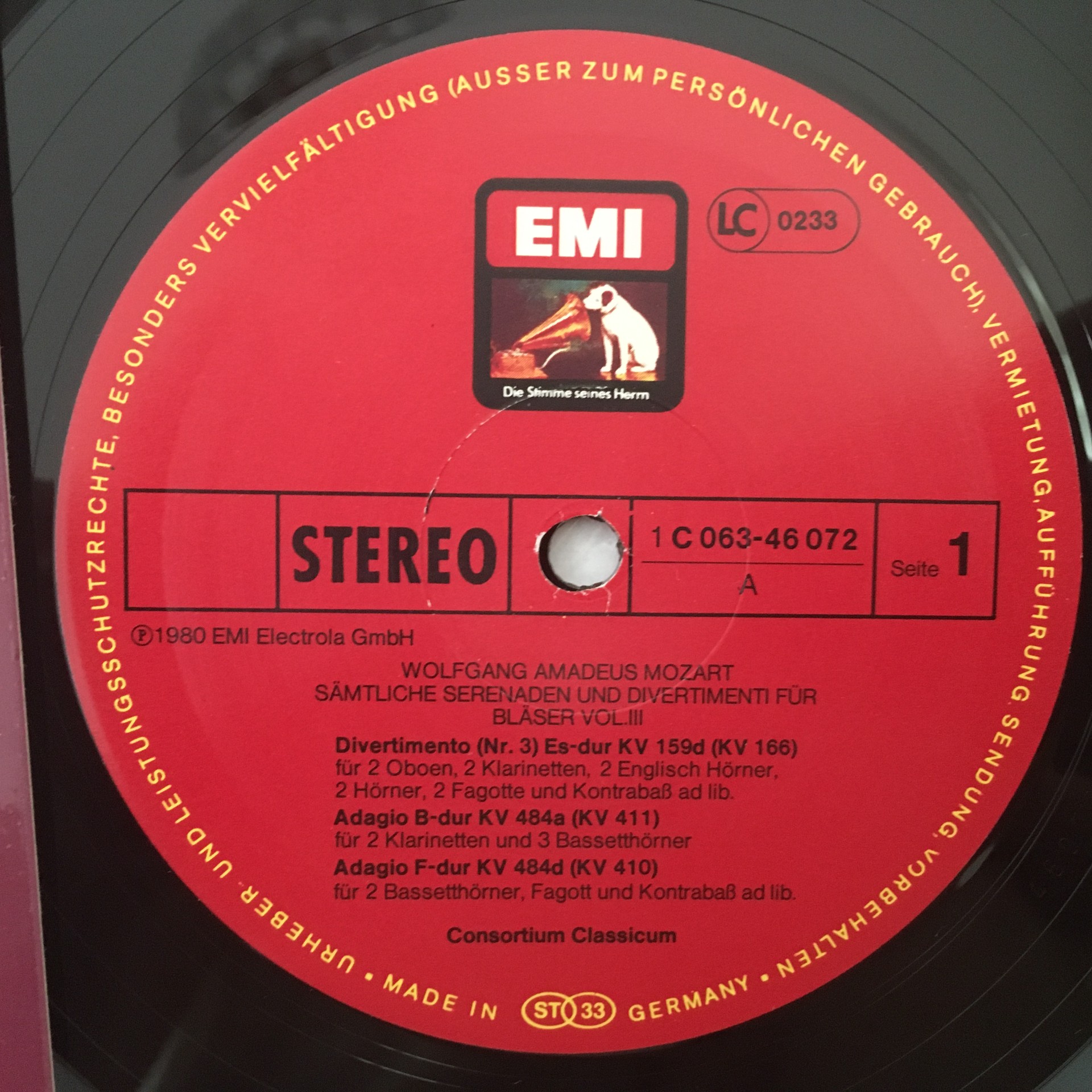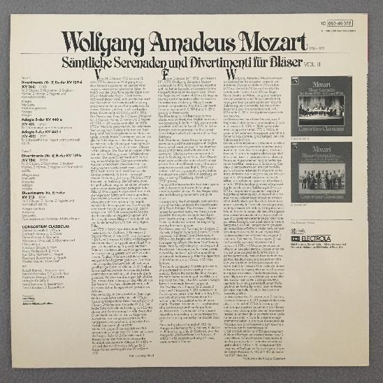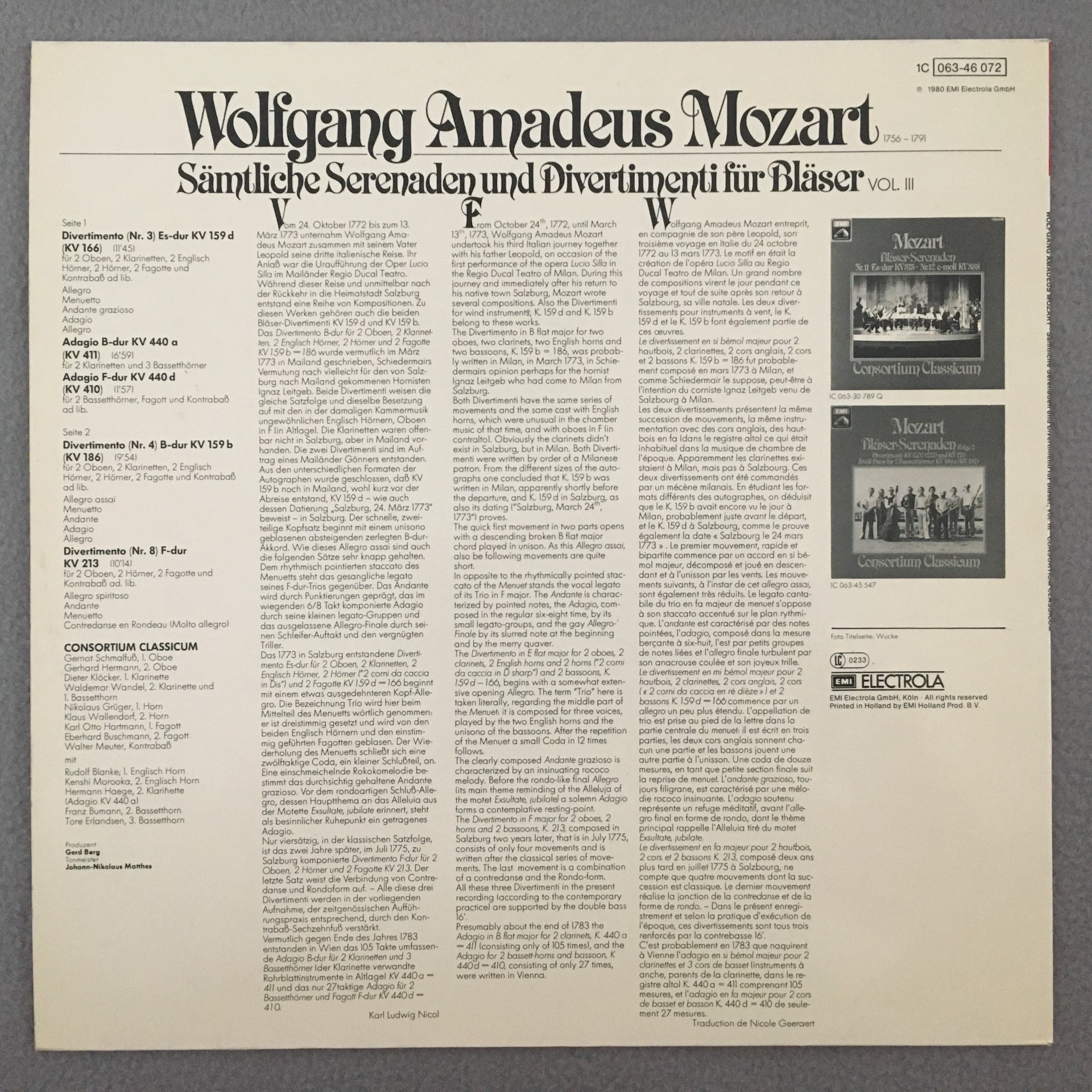 R586 Mozart Wind Serenades Vol.III Consortium Classicum EMI 1C 063-46 072 Stereo