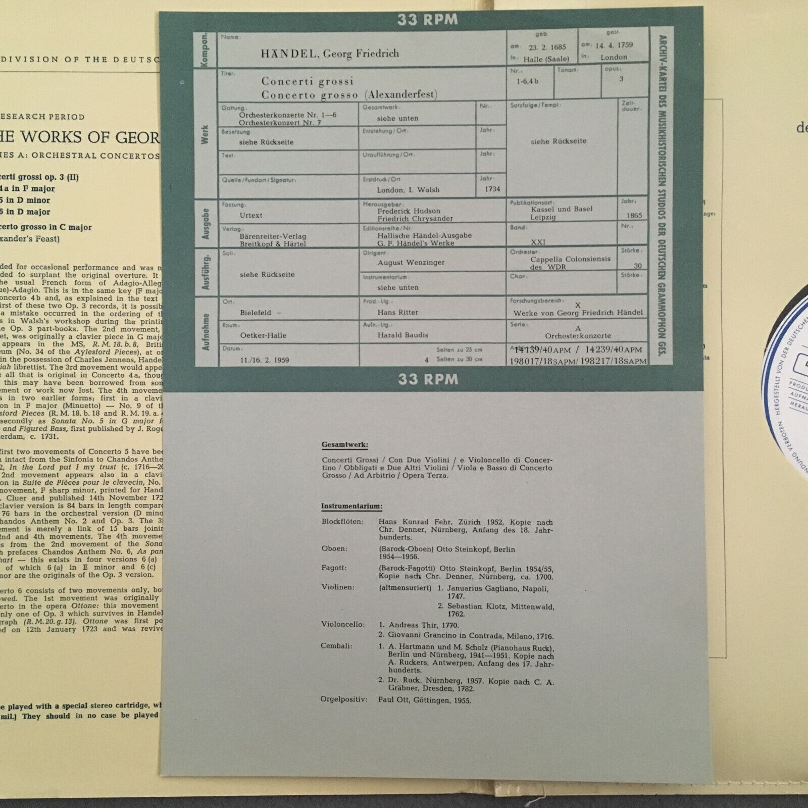 X175 Handel Concerti Grossi Haas Müller Wenzinger DGG Archiv 198 218 SAPM Red St