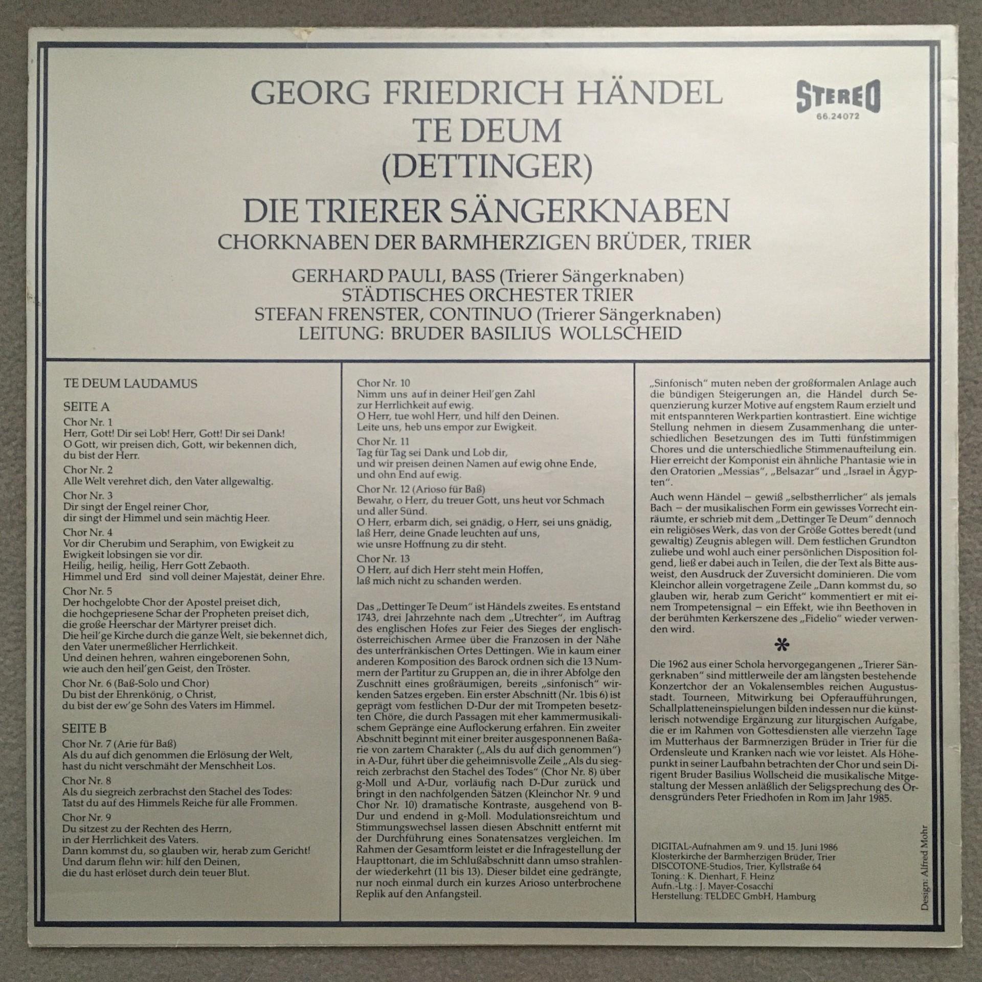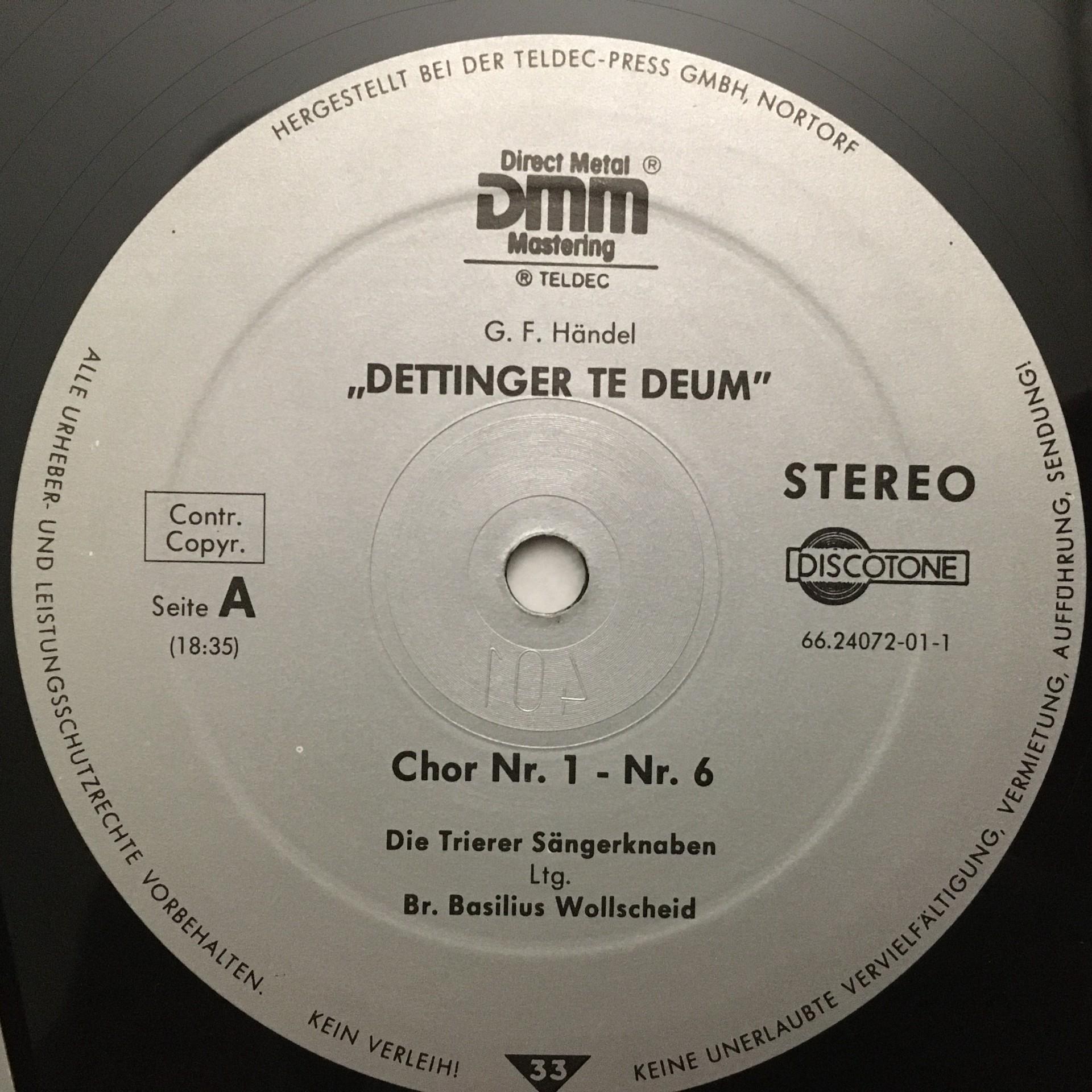T732 Handel Dettinger Te Deum Wollscheid Discotone 66.24072 Digital Stereo