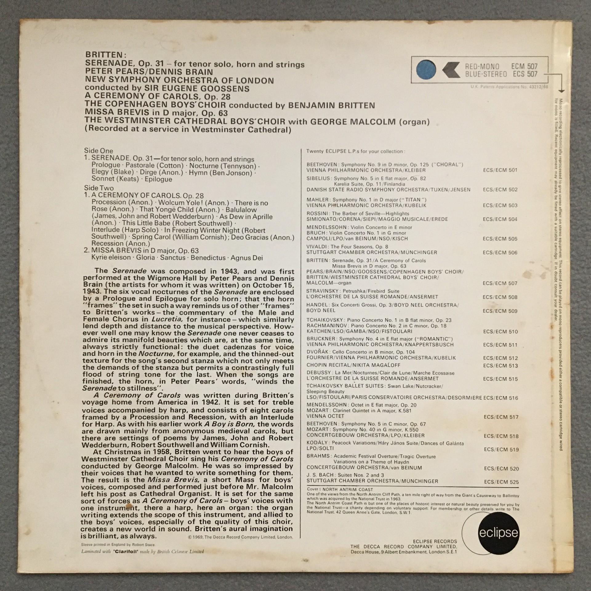 T737 Britten Serenade Pears Brain Britten Eclipse ECM 507 Stereo