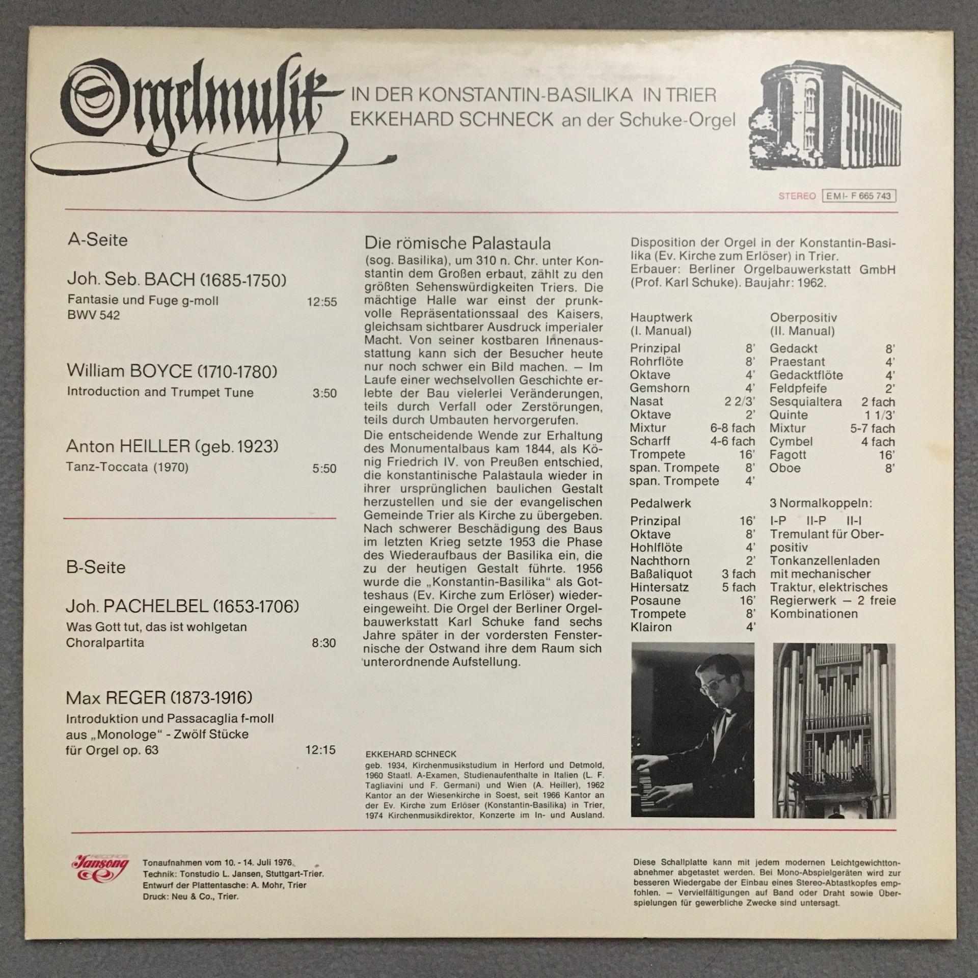 T746 Organ Music in the Basilika Trier Schneck Private F 665 743 Stereo