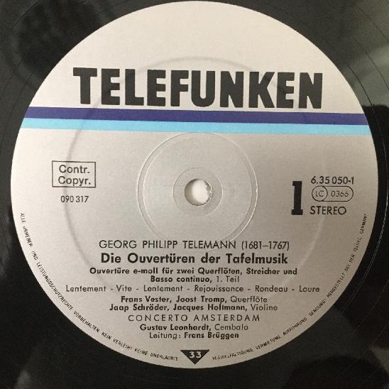 C587 Telemann Chamber Music Leonhardt Brüggen 2LP Telefunken 6.35 050 DX St