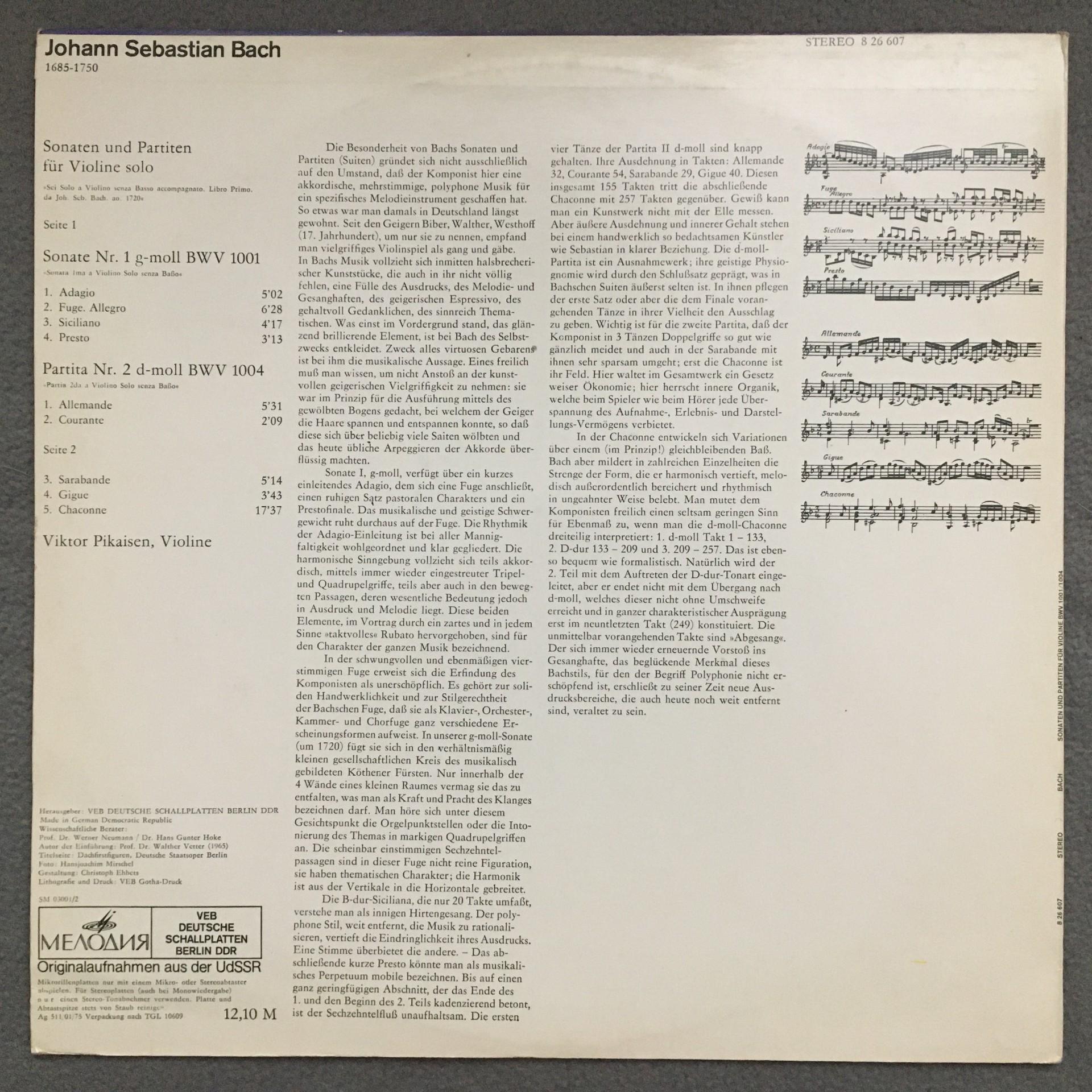 T760 Bach Sonatas & Partitas for Violin Solo Pikaisen Eterna 8 26 607 Stereo