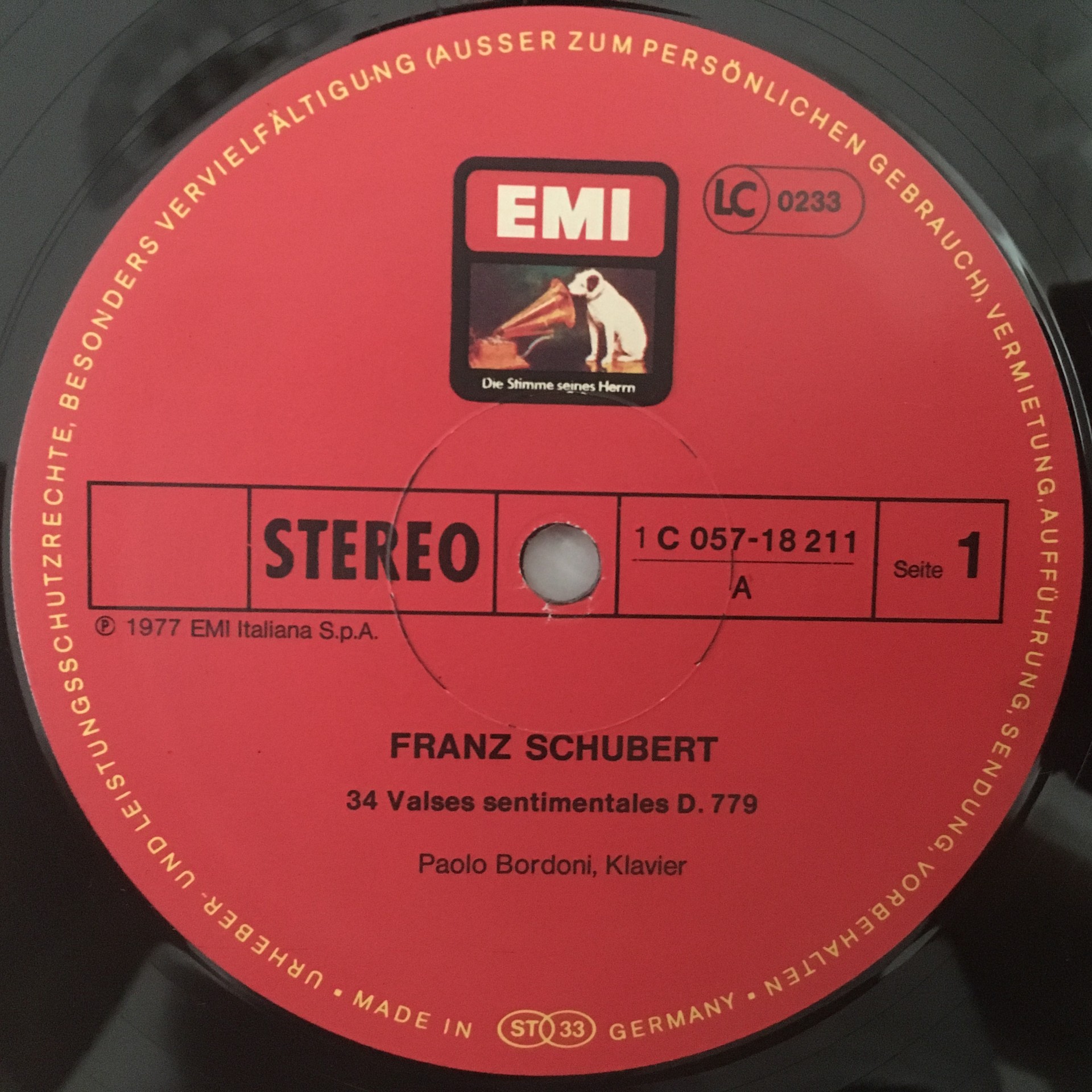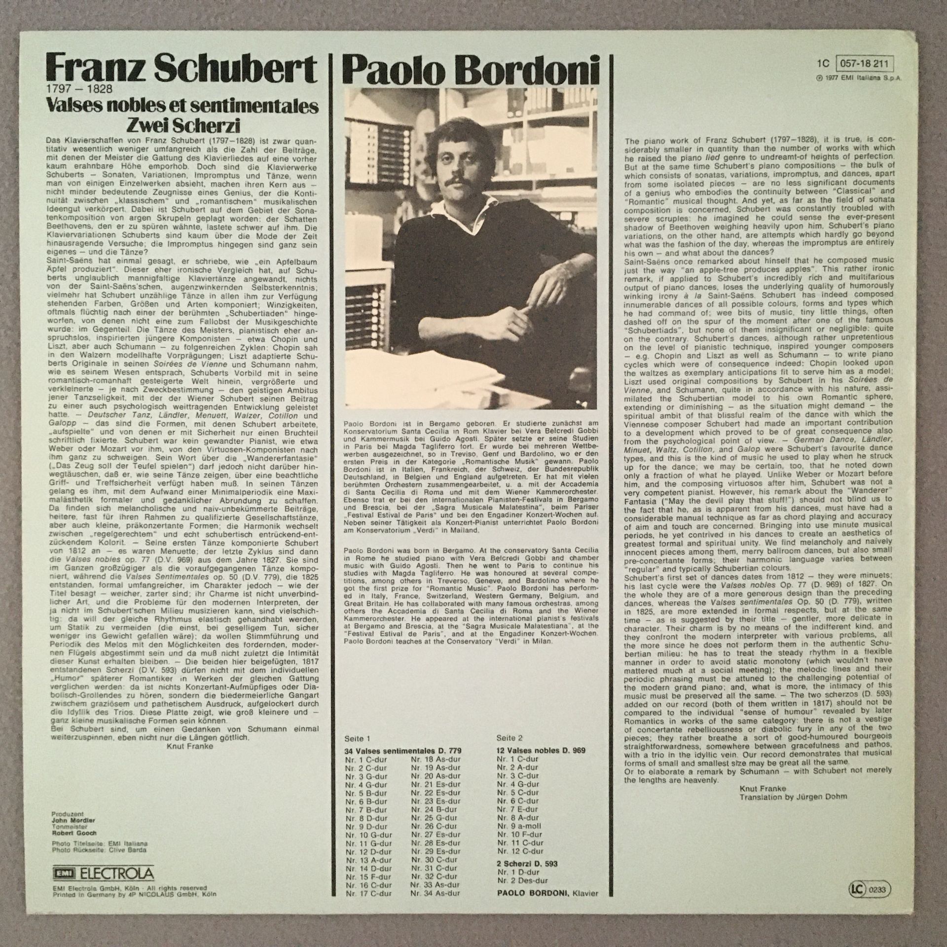 J294 Schubert Valses nobles Scherzi Bordoni Piano EMI 1C 157-18 211 Stereo