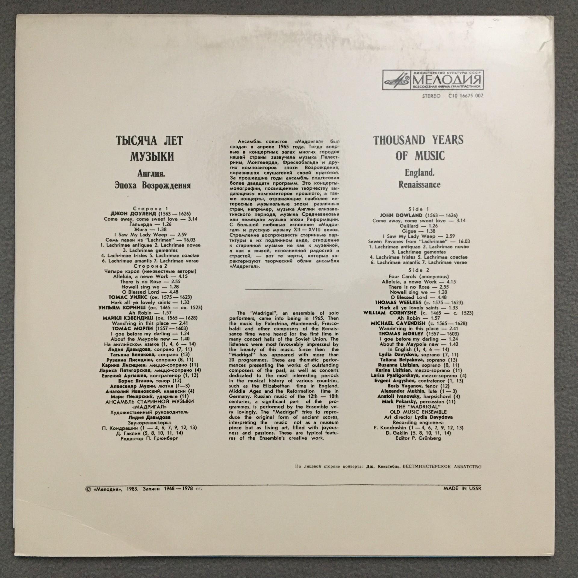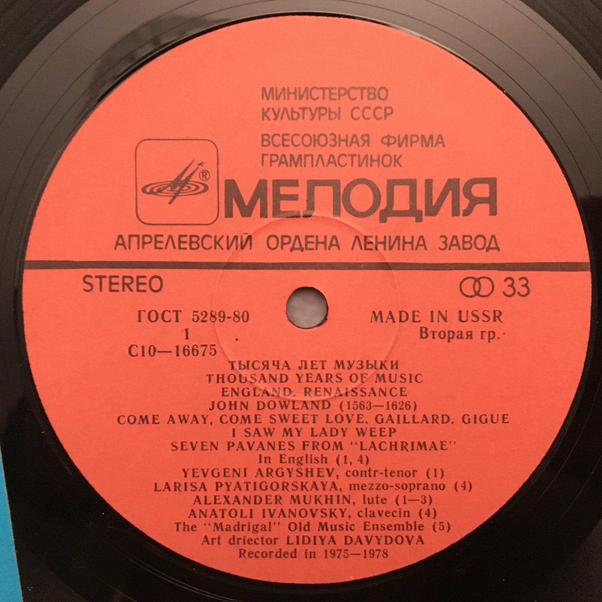 T764 1000 Years of Music England Davydova Melodiya C10 16675 007 Stereo