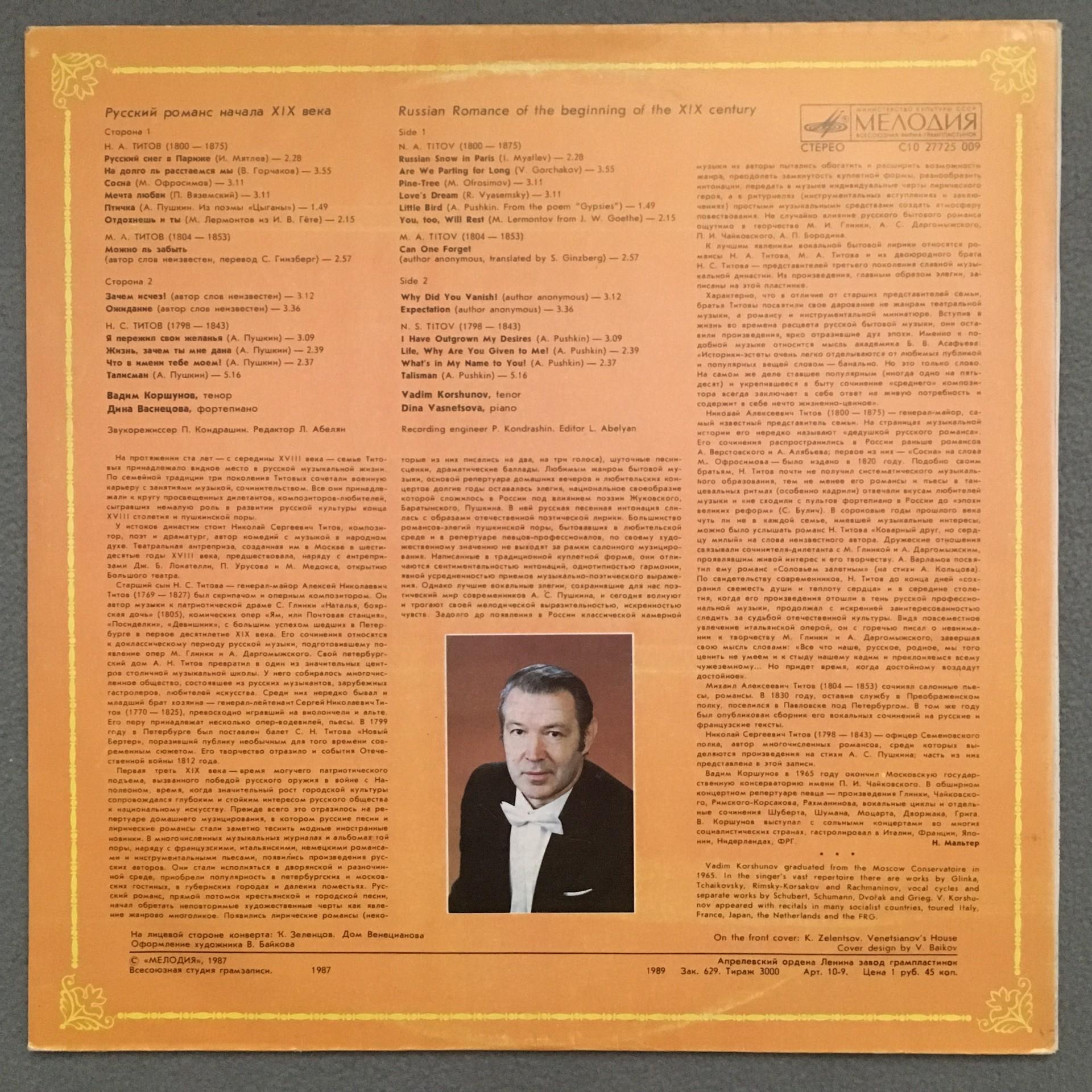 T767 19th Century Russian Romance Titov Melodiya C10 27725 009 Stereo