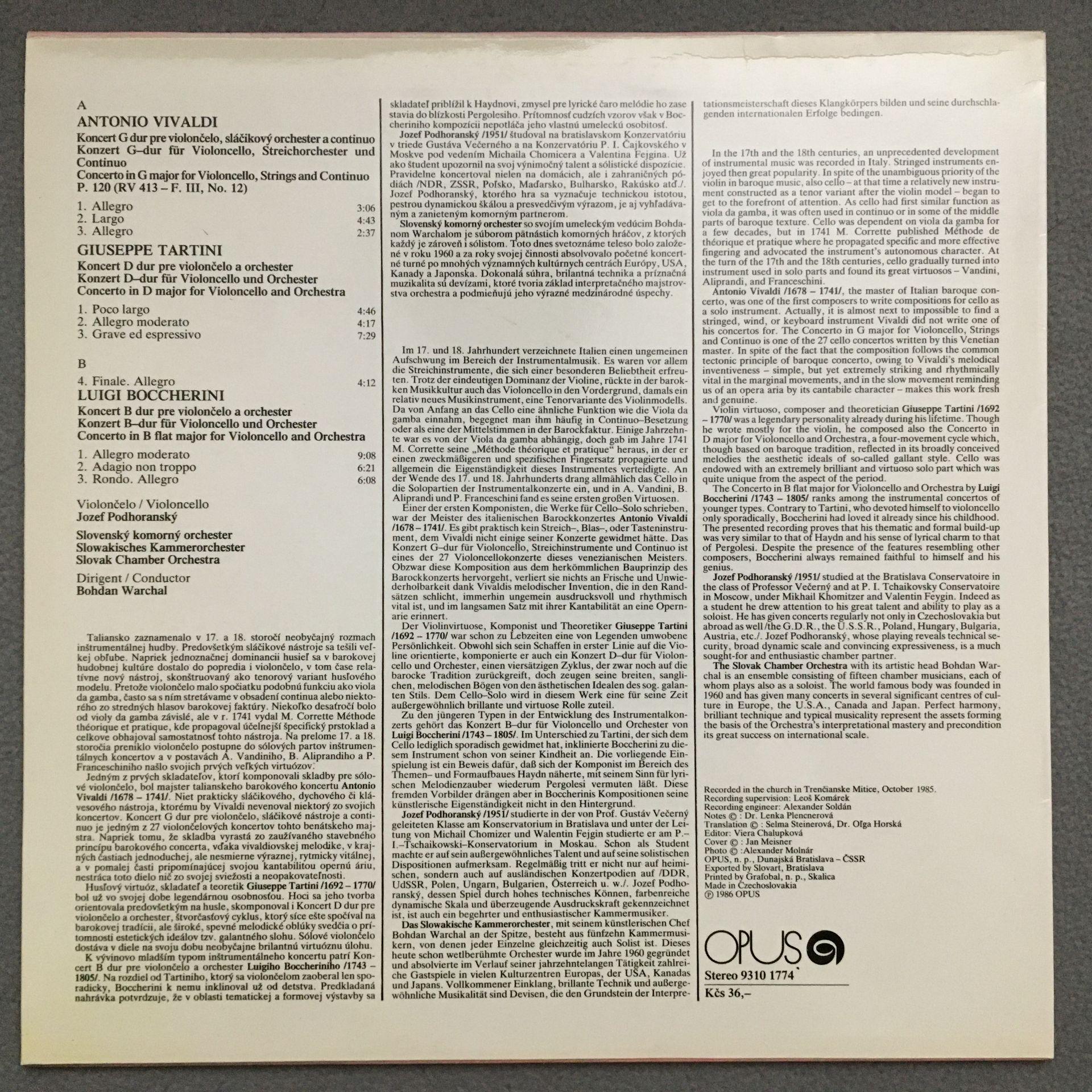 T770 Cello Concertos Vivaldi Tartini Podhoransky Warchal OPUS 9310 1774 Dig Ster