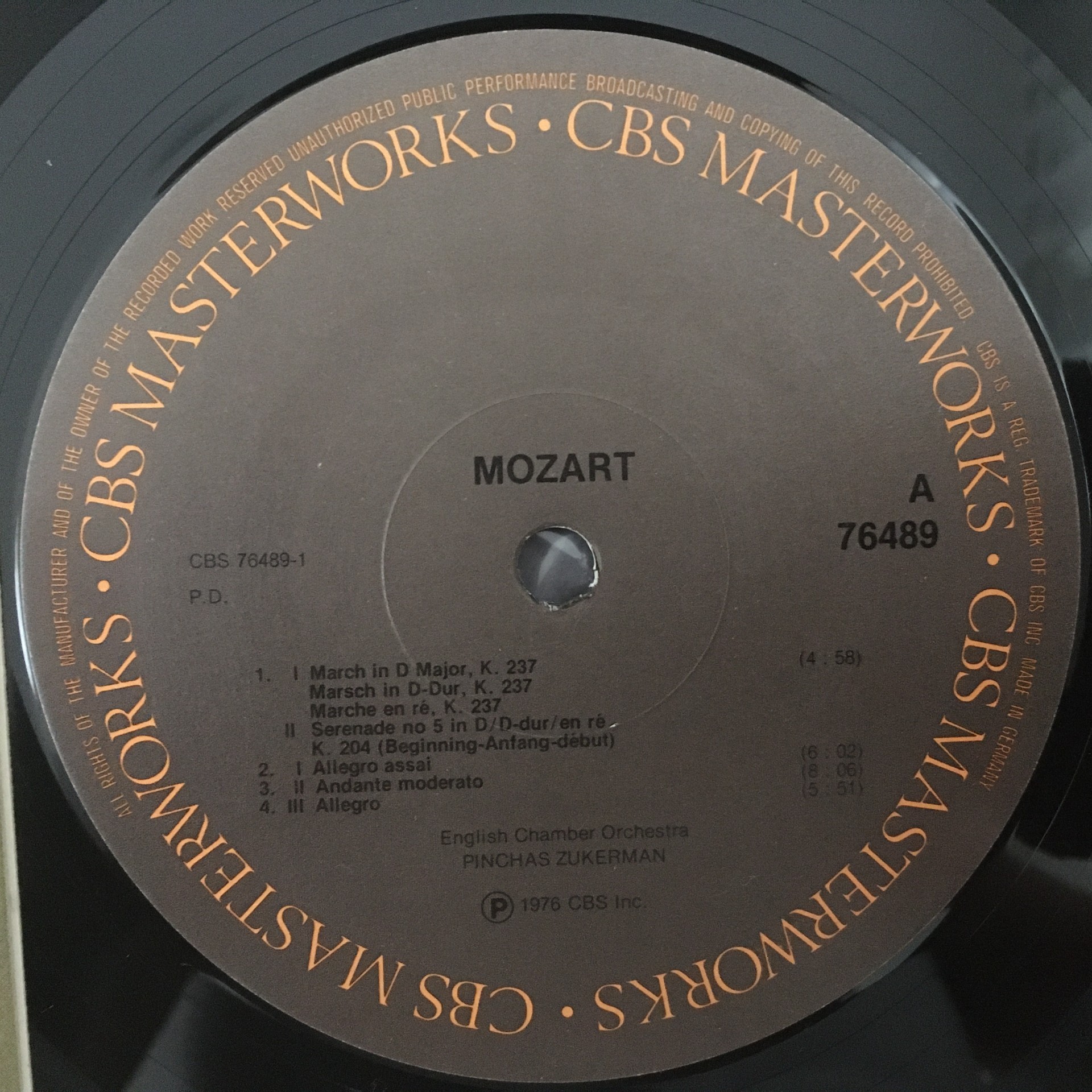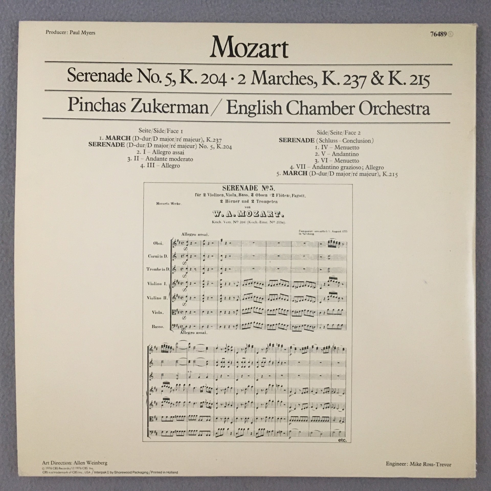 J297 Mozart Marches Serenade Zuckerman Violin CBS 76489 Stereo