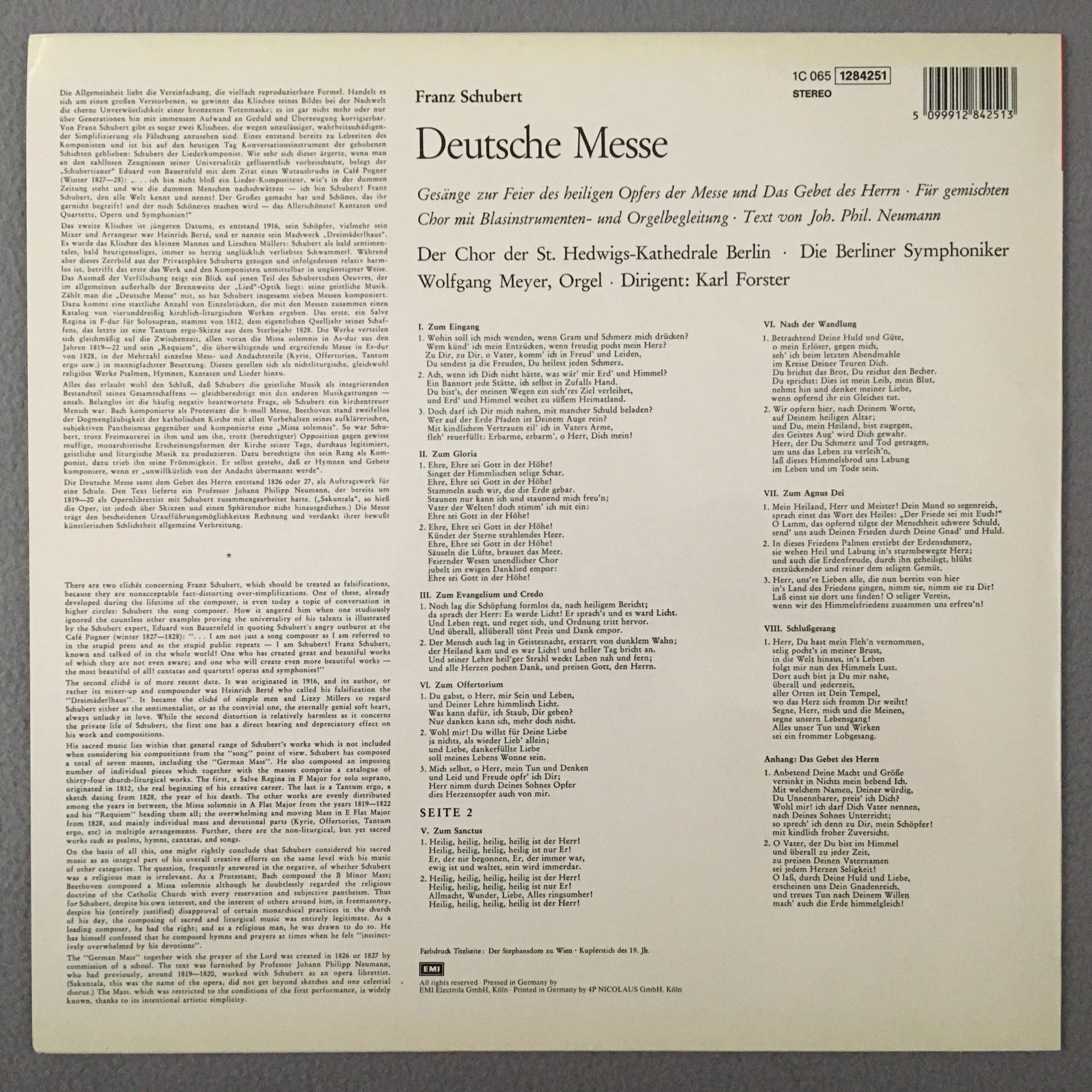 J308 Schubert German Mass Meyer Organ Forster BSO EMI 1C 065 1284251 Stereo