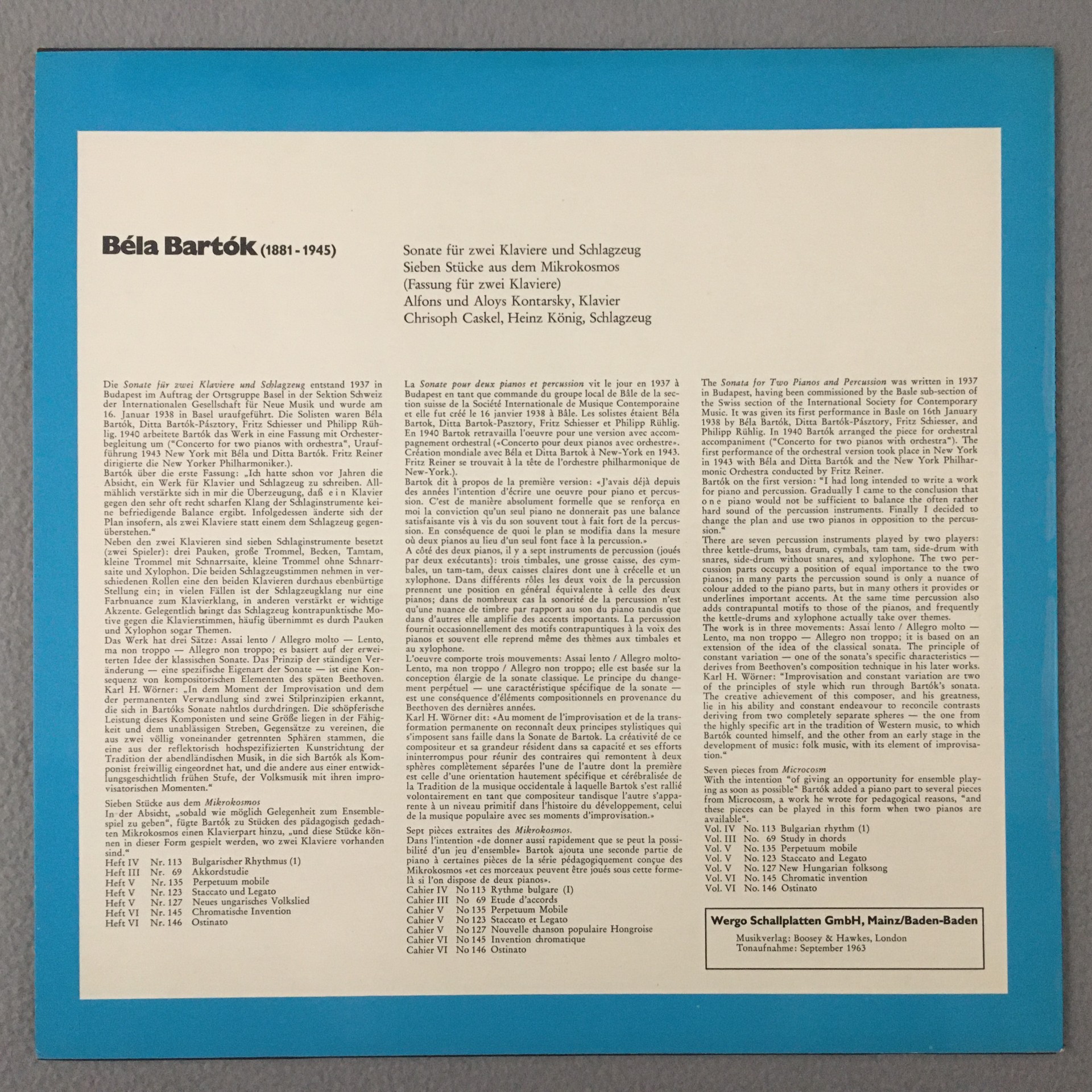 J316 Bartok Piano Sonata 7 Pieces A. & A. Kontarsky Wergo WER 60 007 Stereo