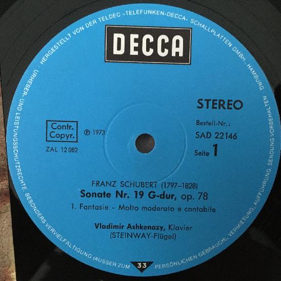 J330 Schubert Sonata No.19 Ashkenazy DECCA SAD 22146 Stereo
