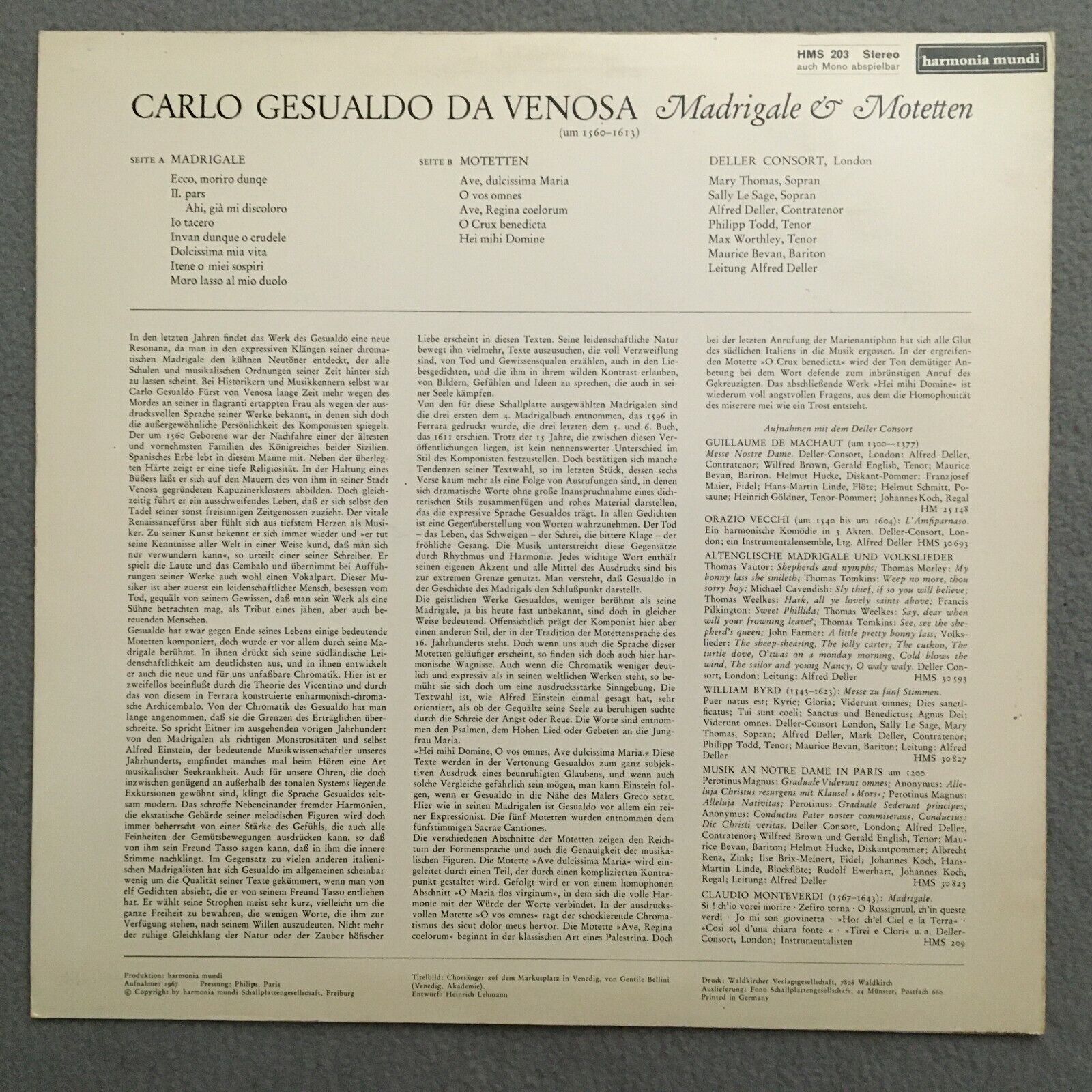 J335 Gesualdo Madrigale & Sacrae Cantiones Deller Consort HM France B 203