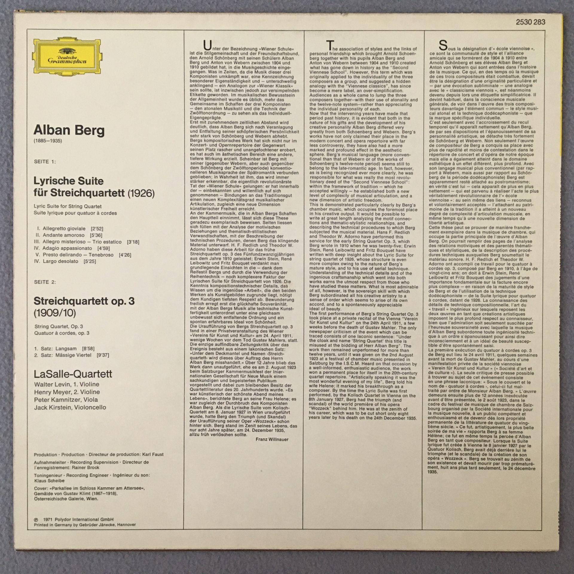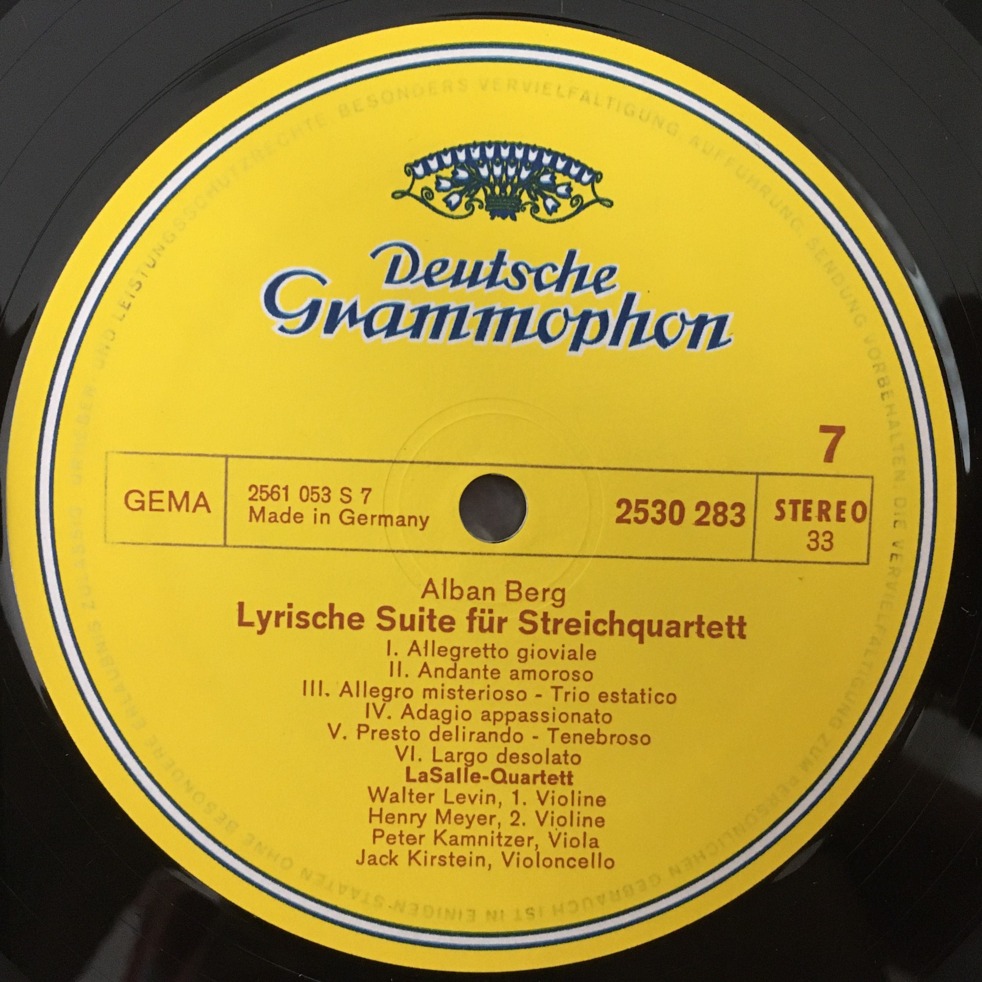 J343 Berg Lyric Suite String Quartet Lasalle Quartet DGG 2530 283 Stereo