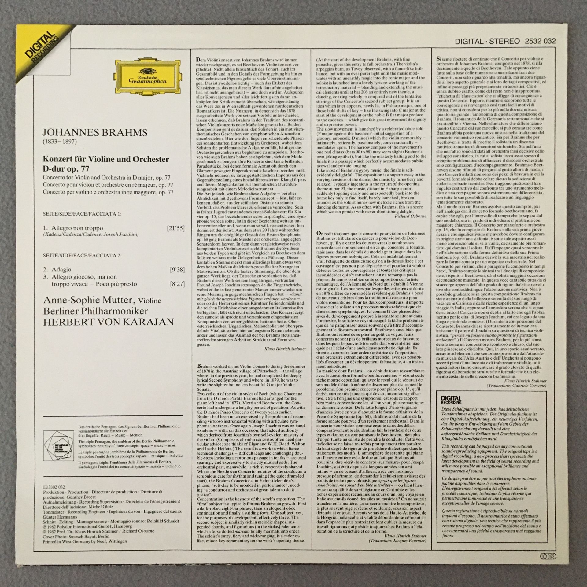 J351 Brahms Violin Concerto Mutter Karajan BPO DGG 2532 032 Digital Stereo