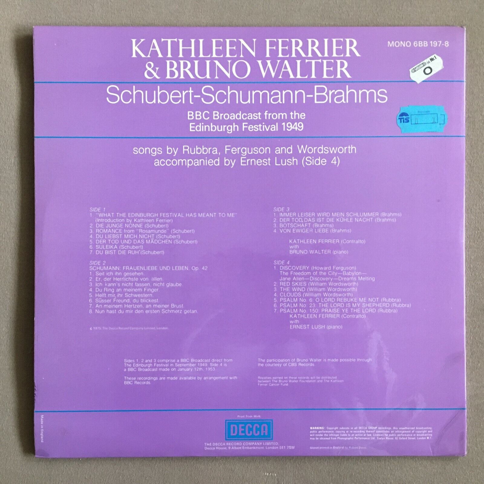 X782 Ferrier & Walter Schubert Schumann Brahms Songs 2LP DECCA 6BB 197-8