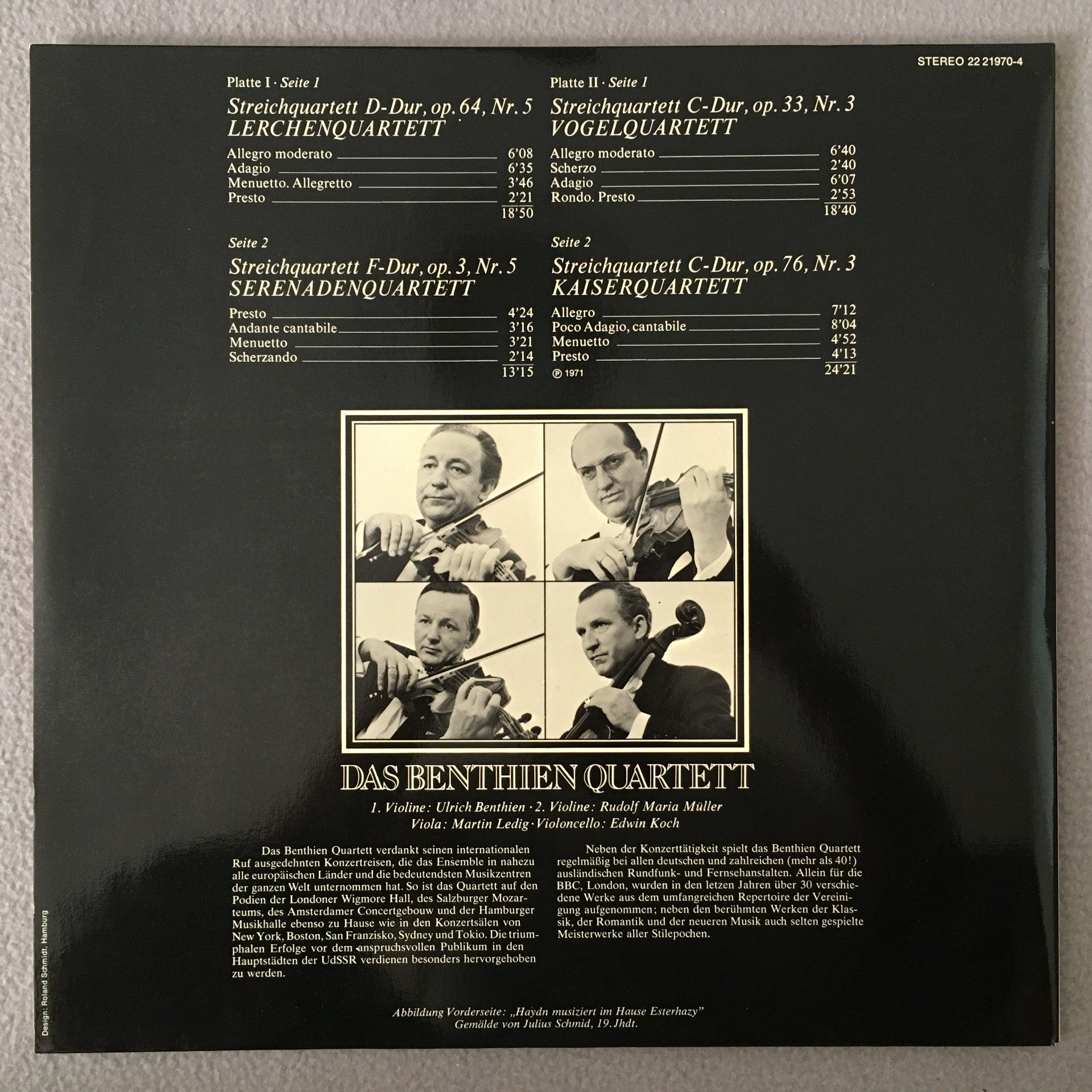 J388 Haydn Quartets Benthien Quartet 2LP BASF 22 21970-4 Stereo