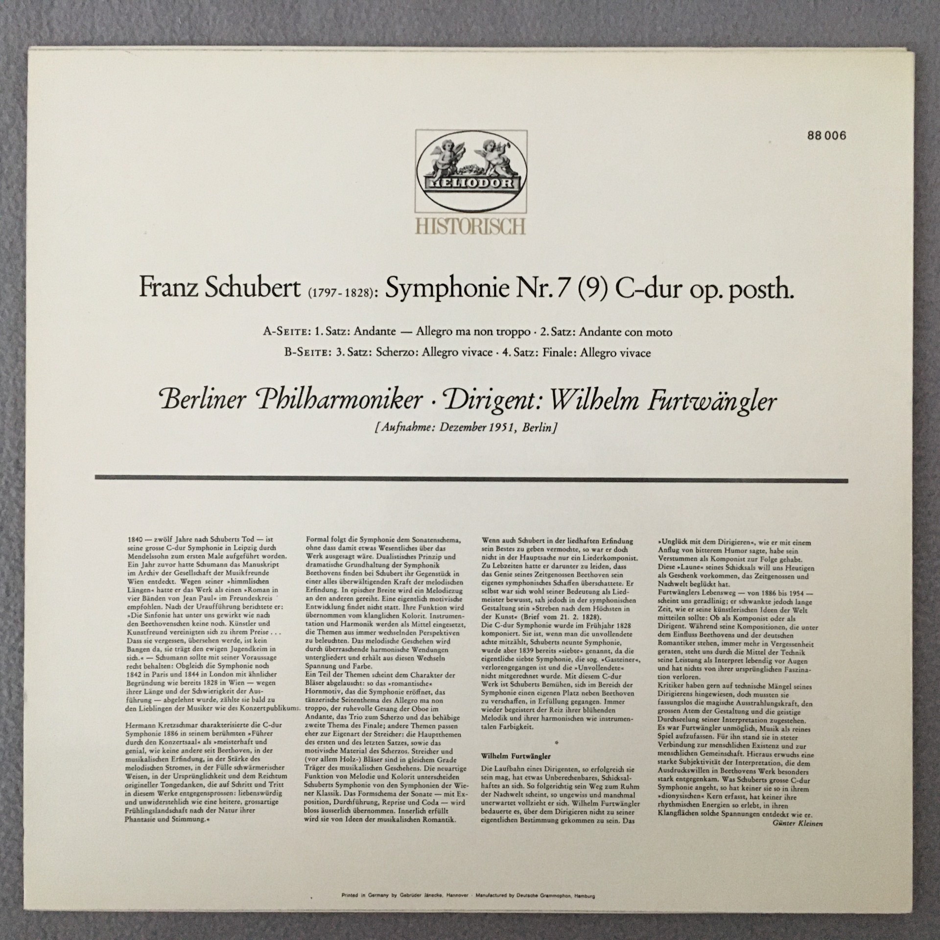 J396 Schubert Symphony No.7 (9) Furtwangler BPO Heliodor 88 006