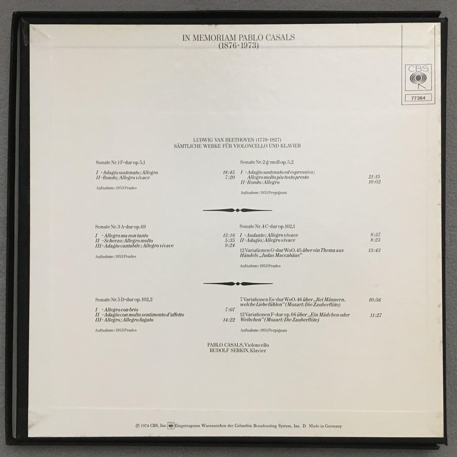 E322 In Memoriam Casals Mozart Cello & Piano Works Serkin 3LP CBS 77 364 Stereo