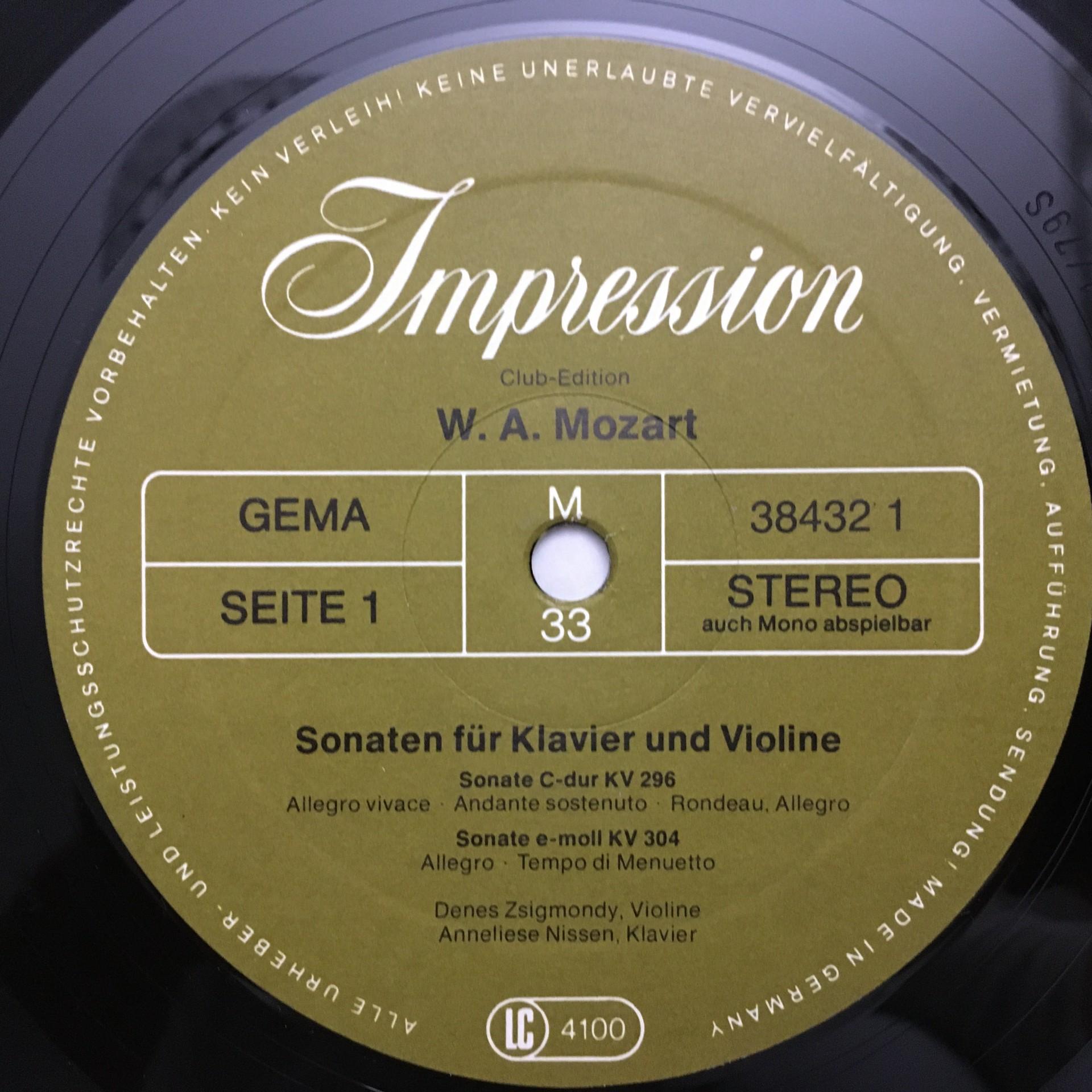 E326 Mozart Violin Sonatas Zsigmnody Nissen Piano 5LP Impression 38 431 3 Stereo