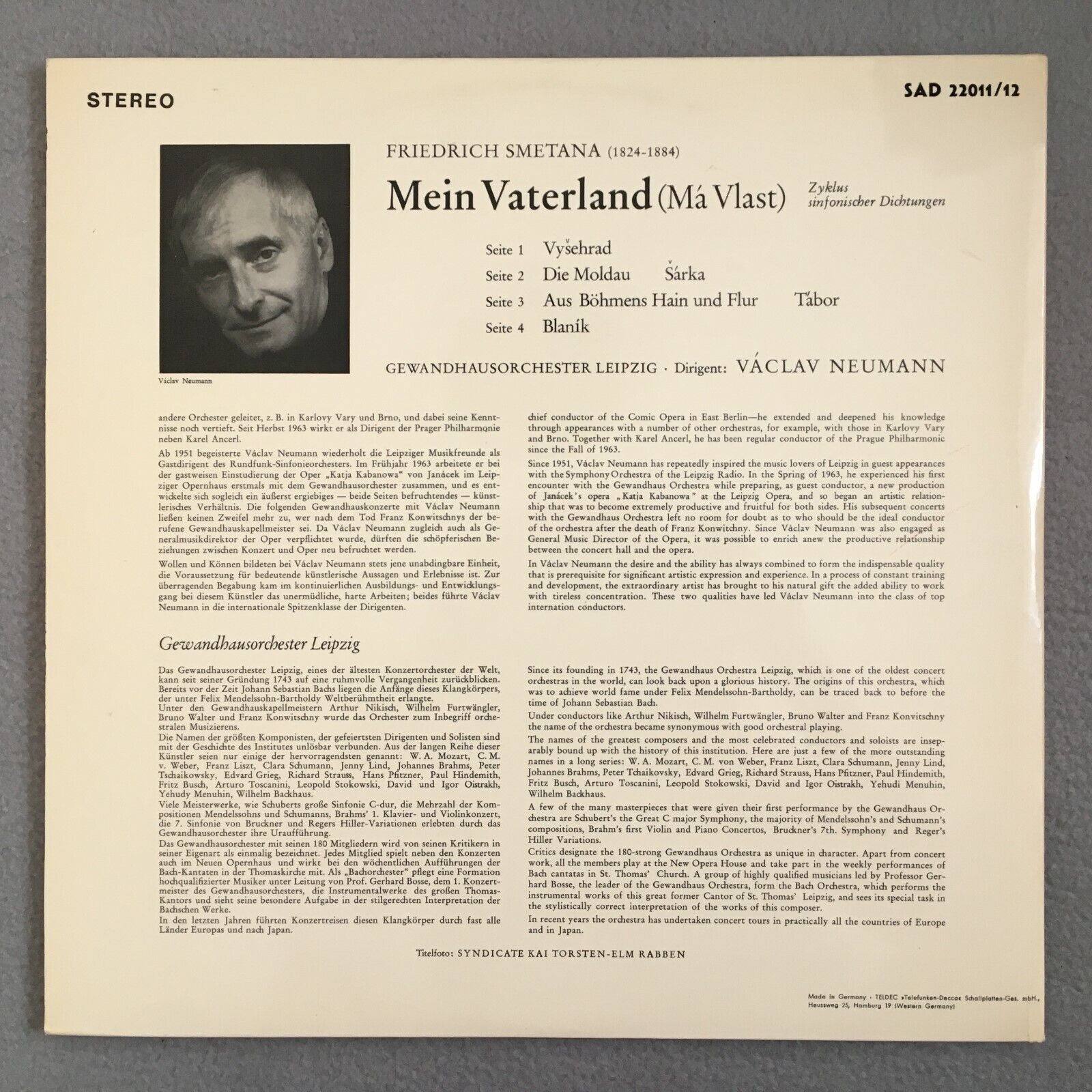 X889 Smetana My Fatherland Moldau Neumann 2LP DECCA SAD 22011/12 Stereo