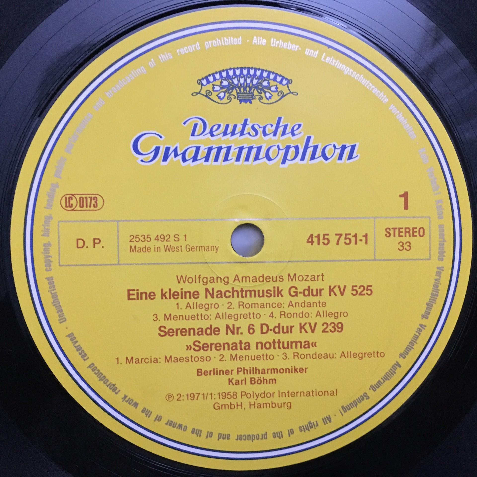 E343 Mozart Little Night Music Serenata Bohm VPO 2LP DGG 415 750-1 Stereo