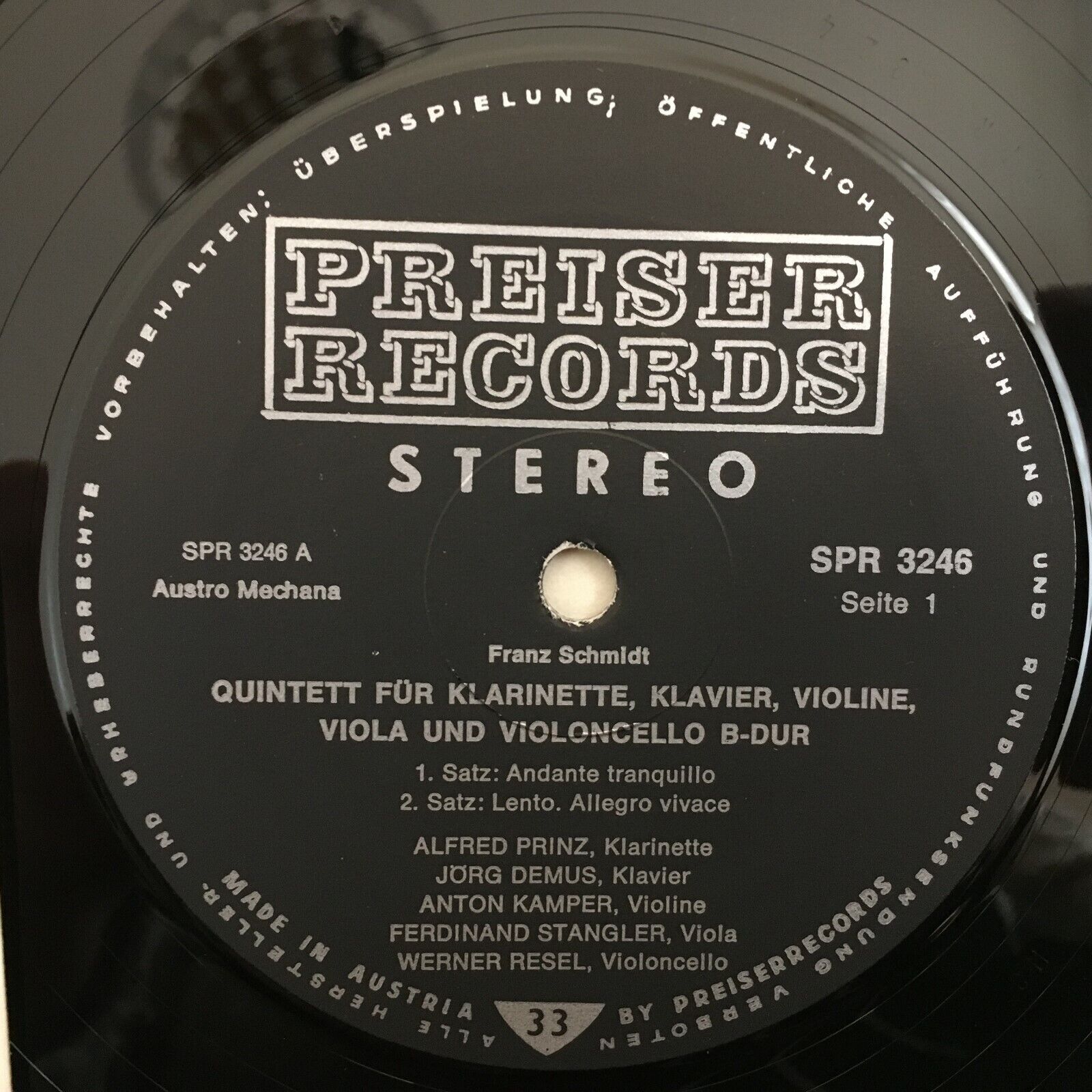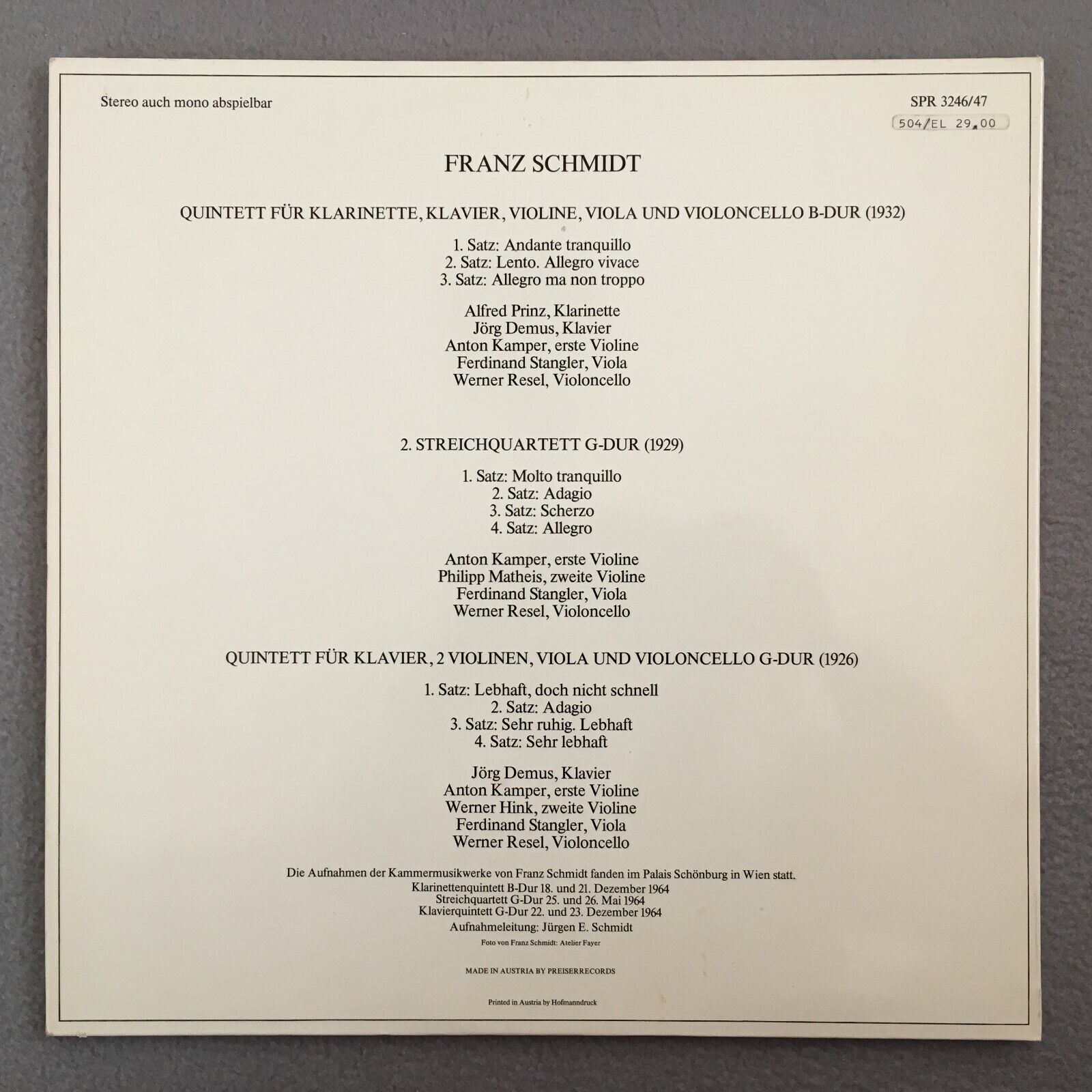 X911 Schmidt Chamber Music Demus Prinz Preiser Records 2LP SPR 3246/47 Stereo