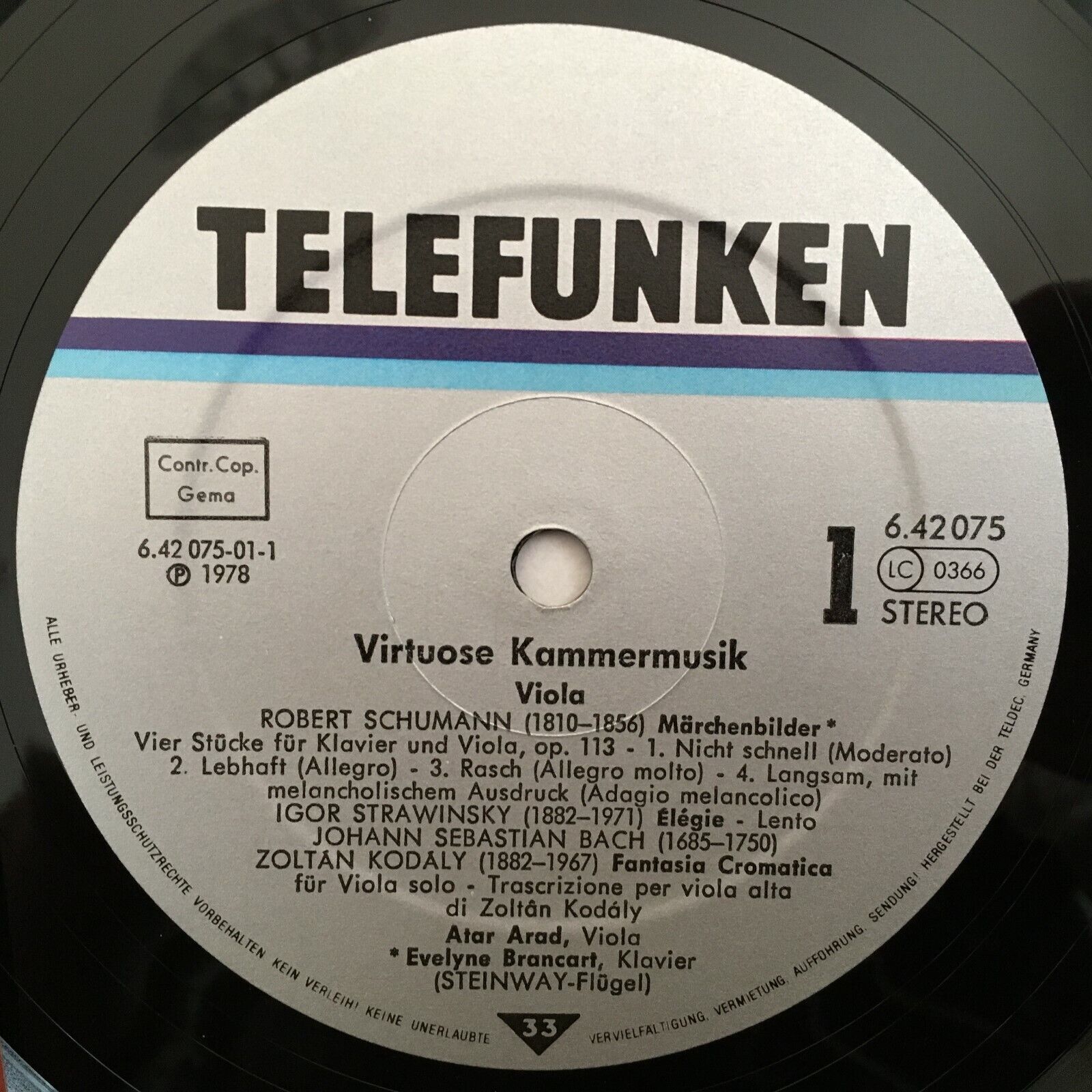 X912 Virtuoso Chamber Music Arad/Viola Brancart Telefunken 6.42075 AP Stereo